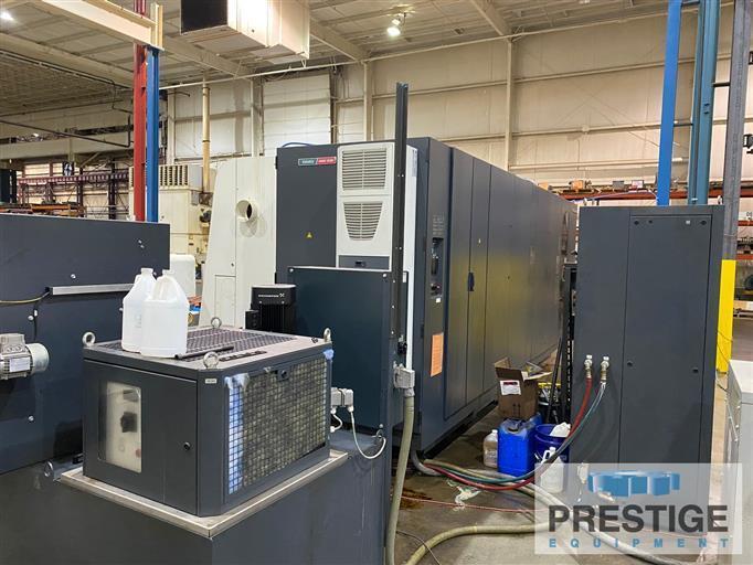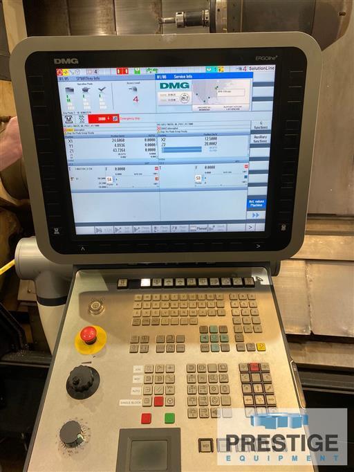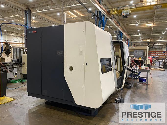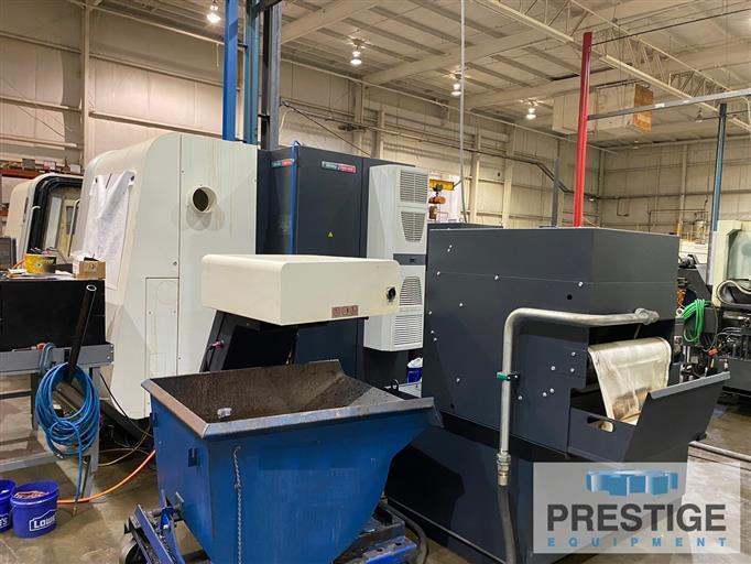 Maximum Workpiece Diameter 27.6" Maximum Workpiece Length 78.74" Maximum Bar Capacity 4.1" X1 Travel 25.59" Y1 Travel +/-7.87" Z1 Travel 80.70" Z2 Travel 75.19" Z3 Travel 75.19" B-Axis +/- 0.001 Degrees MAIN SPINDLE: Chuck Size 20" Maximum Speed 2,500 RPM Motor Output (30 minute rating) 70 HP SECOND SPINDLE: Chuck Size 13" Maximum Speed 4,000 RPM Motor Output (30 minute rating) 61 HP MILLING SPINDLE: B-Axis Travel 240 Degrees Tool Magazine 36 ATC Tooling HSK63 Maximum Speed 8,000 RPM Motor Output 43 HP Approximate Dimensions 299" x 166" x 100" Approximate Weight 52,910 Equipped With: Siemens 840D CNC Control Main & Counter Spindles 15" Chuck on Main Spindle 18" Chuck on Counter Spindle Lower Turret High Pressure Coolant System Factory Coolant Chiller Dual CTS 300 PSI & 1000 PSI Pumps Balanced Pressure Clamping for Main and Sub-Spindles Flushing of Chucks, Steady Rest, Way Covers Chiller System, Cooling of the Milling/Turning Spindle and Counter Spindles Sub Spindle as Tailstock Option with Programmable Movement and Force 36 Station Automatic Tool Changer Automatic Cabin Doors Chip Conveyor Tooling NOTE: Machine in Plant Under Power. Was used for 5-Axis Machining of Prototype Parts |