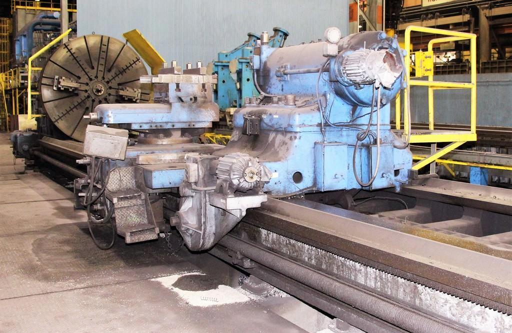 Maximum Swing Over Bedways 100" Maximum Swing Over Cross Slide 63.5" Distance Between Centers 580" Maximum Spindle Speed 80 RPM Spindle Motor 100 HP Equipped With: 96" Face Plate Anilam Digital Read Out Tailstock |