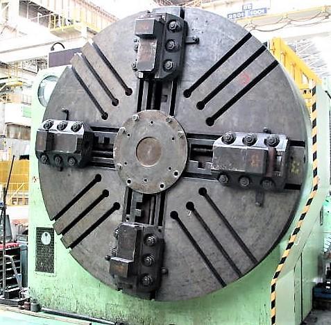 Maximum Swing Over Bedways 147.63" Maximum Swing Over Carriage 127.95" Distance Between Centers 590.55" Overall Width of Bed Ways (4 Total) 141.73" Tailstock Quill 19.68" Spindle Bore 4.13" Spindle Motor 160 HP Spindle Speeds .33 - 75 RPM Feeds (Longitudinal) .009 - 11.81 IPM Feeds (Cross) .004 - 5.905 IPM Weight Capacity (Without Steadies) 120 Tons Equipped With: 118" Diameter Face Plate 2-Carriages 6-Steady Rests 4-Way Bed Construction Taper Attachment Inch/Metric Threading Tailstock With Live Center 160 HP Main Motor |