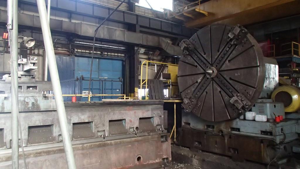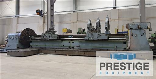 Maximum Turning Dia.Over Floor Plate 157.48" Maximum Swing over Headstock Bedways 98.42" Face Plate Diameter 78.74" Turning Length 314.96" Distance Between Centers 393.7" Headstock Travel 39.37" Spindle Speeds (24).................... .8-100 RPM .8-100 RPM Weight Capcity Between Centers 66,000 lbs Weight Capacity With One Steady Rest 77,000 lbs Weight Capacity With Two Steady Rest 88,000 lbs Tailstock Quill Diameter 11" Quill Travel 7.87" Quill Travel 7.87" Equipped With: 78" Face Plate Type Chuck with 4-Chuck Jaws (5) 78.74" x 275.59" T-Slotted Floor Plates Carriage With 2-Portable Bed Sections Hardened Steel Way Inserts Inch/Metric Threading Taper Cutting By Change Gears Heavy Duty Tool Post Tailstock Tailstock Axial Force Indicator (3)Roller Type Steady Rests Grinding Attachment Auto Lubrication 100 HP Main Motor (380/3/50) NOTE: Universal Facing & Turning Lathe Designed for machining large Diameter work pieces. Especially useful for machining paper drums, boiler cylinders, turbines. |
