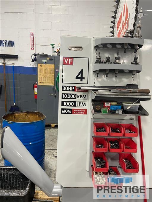 X-Axis Travel 50" Y-Axis Travel 20" Z-Axis Travel 25" Table Size 52" x 18" Table Load Capacity 3500 lbs Distance, Spindle Nose to Table 4"-29" Spindle Speeds 10,000 RPM Spindle Taper CAT #40 Spindle Drive Motor 30 HP Tool Changer 20 ATC Dimensions 126" x 104" Machine Height 115" Approx. Weight 14,600 Lbs. Equipped With: Haas CNC Control 40 Station Side Mounted Tool Changer Pre-Wired 4th Axis Minimum-Oil Machining 30 HP Motor 1,000 IPM Chip Auger NOTE: Inspect in Plant Under Power |