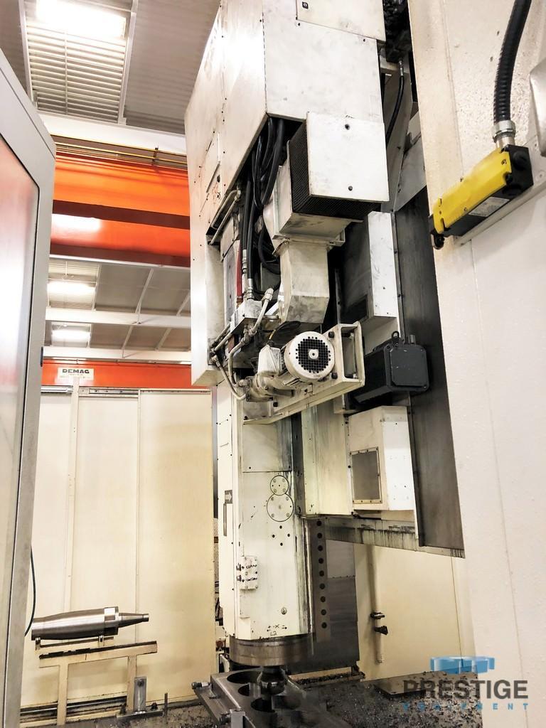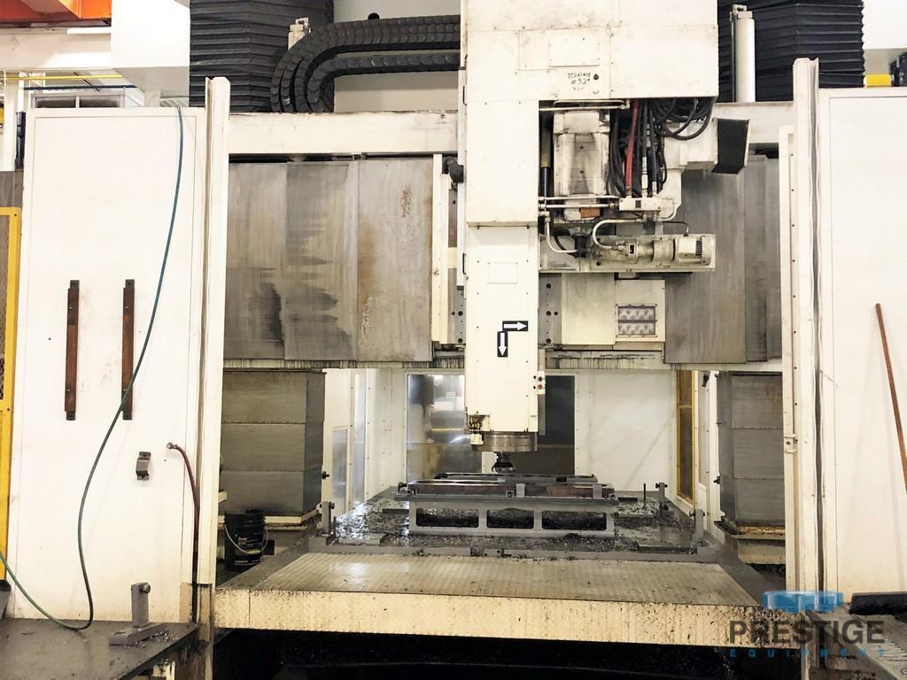 Pallet Size, (2) 98" x 138" X-Axis 236" Y-Axis 141" Z-Axis, Cross Rail 74.8" W-Axis, Ram Stroke 39.4" Distance Between Columns 122" Height Under Vertical Spindle 98" Ram Cross Section 18" x 18" Spindle Speeds, 4-Ranges 10-2000 RPM Spindle Drive Motor 84 HP Spindle Taper #50 ANSI Rapid Traverse 400 IPM Table Weight Capacity 50,000 LB Equipped With: Siemens Sinumerik 840SL CNC Controls (Retrofit 2014) Simoreg DC Master Spindle Drive Sinamics 120 Servos 100 Station Automatic Toolchanger Automatic Attachment Changer Right Angle Attachment Two Spindle Extentions Thru Spindle Coolant Renishaw Probe Broken Tool Detection NOTE: Complete Factory Retrofit including Electrical, Hydrostatic and Bridge Controls Including New Siemens Controls, Motors, Drives, Cabinet and Chiller |
