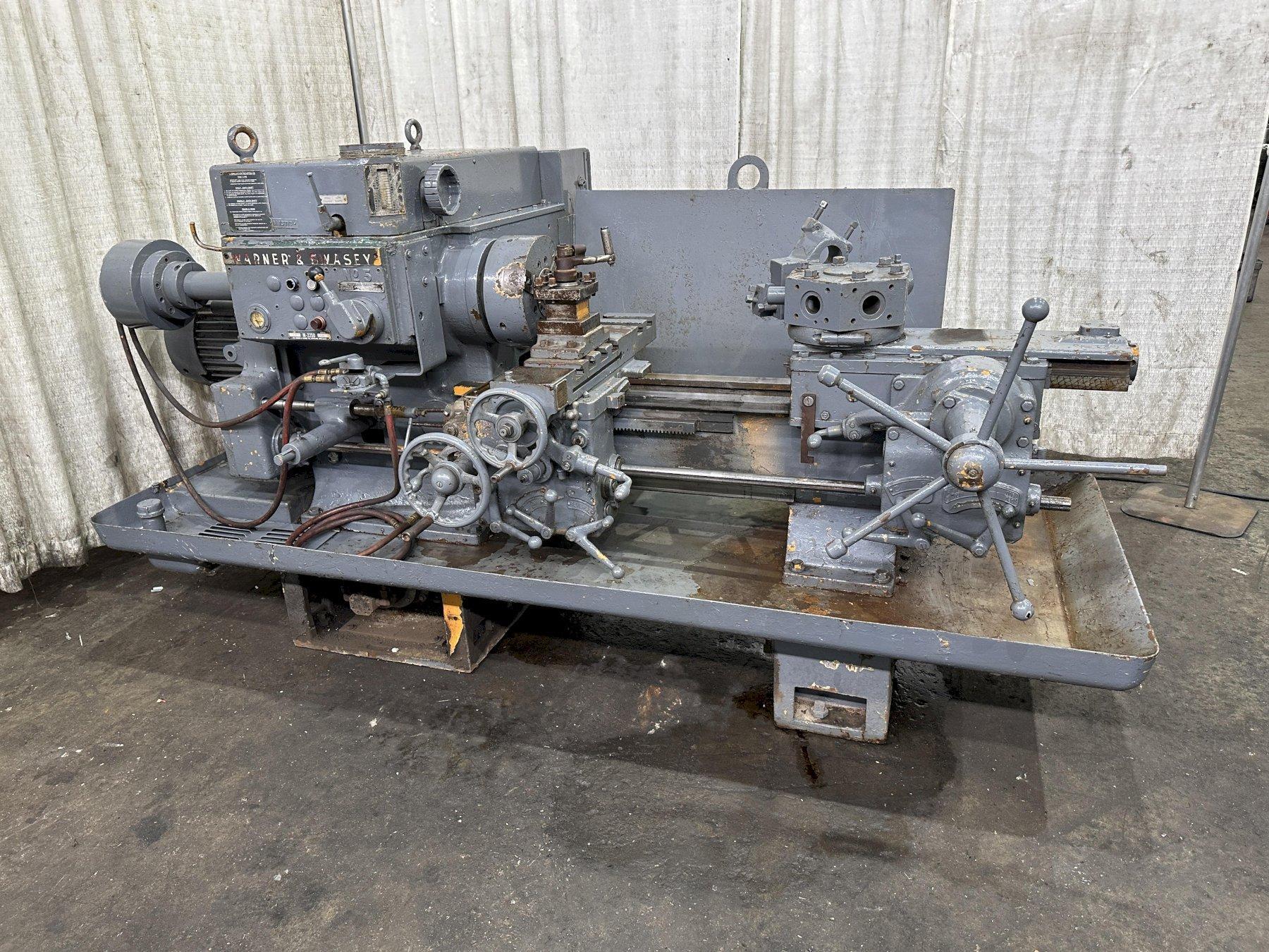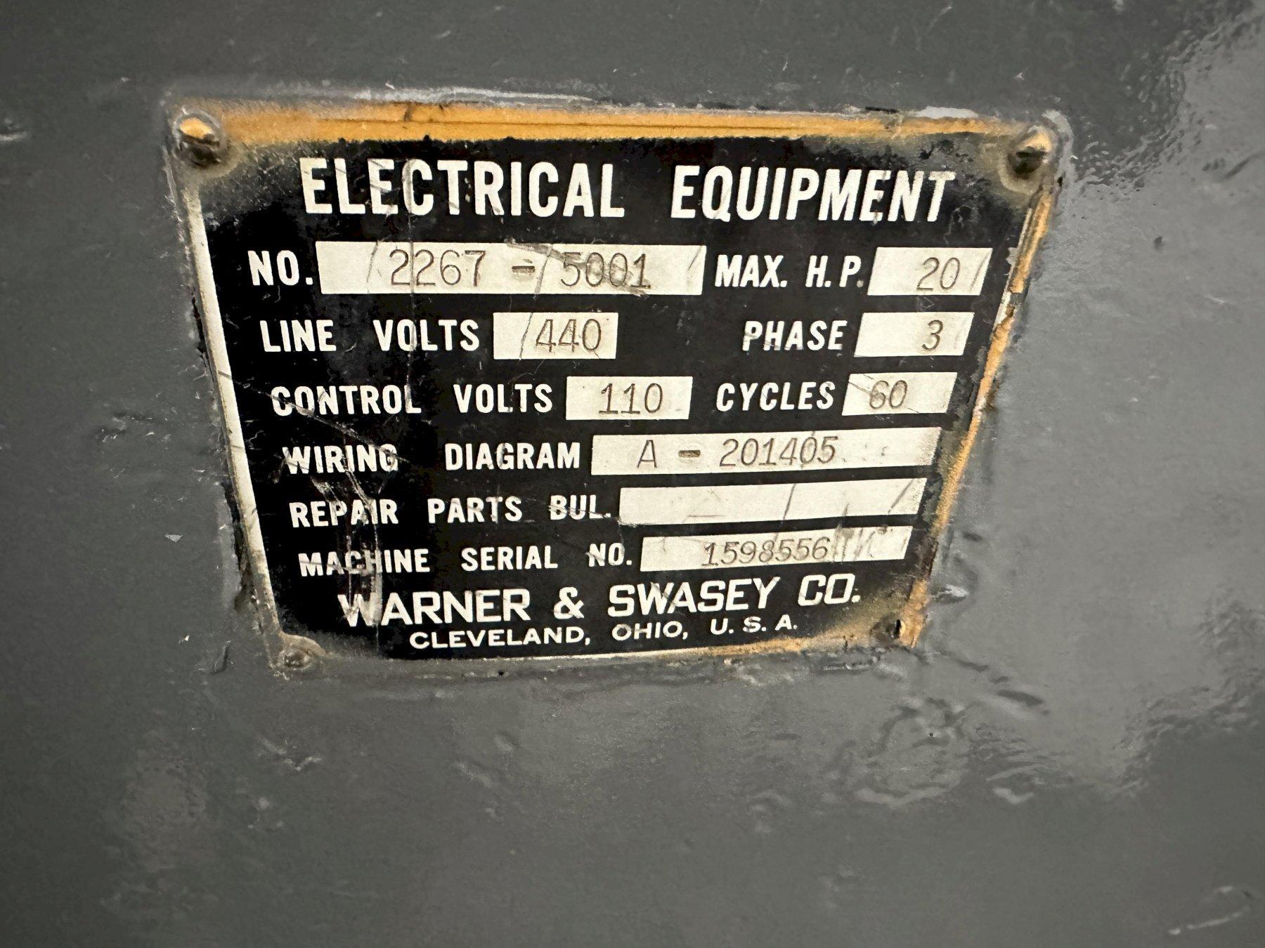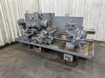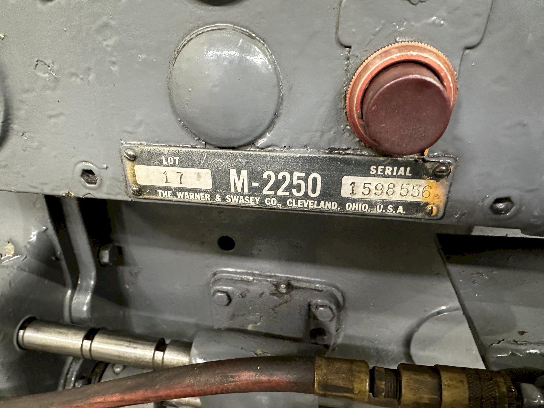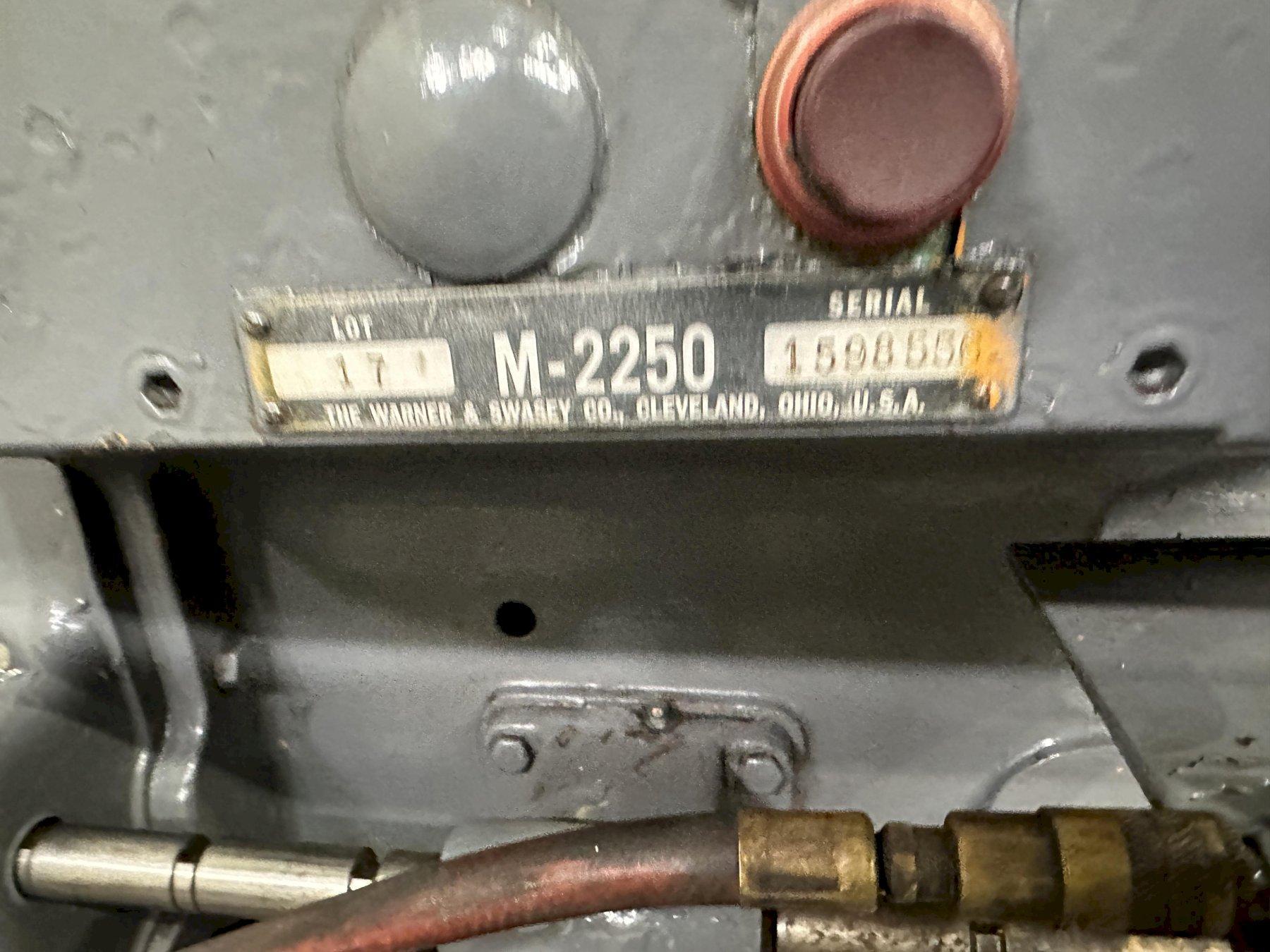SERIAL ..............................1598556 MODEL ............................... 5 (M-2250) SQUARE HEAD SWING OVER BED ...................... 20" SWING OVER CROSS SLIDE .............. 10-1/4" SPINDLE NOSE TO TURRET FACE (MAX.) .. 36-1/2" HOLE THRU SPINDLE ................... 2-7/8" SPINDLE SPEEDS ...................... (24) 25 TO 1556 RPM CARRIAGE LONGITUDINAL FEEDS ......... (6) .0023 TO .022 IPR CARRIAGE CROSS FEEDS ................ (6) .0015 TO .014 IPR TURRET FEEDS ........................ (6) .003 TO .024 IPR CHUCK ............................... 3 JAW CHIP PAN ............................ YES COOLANT ............................. YES SPINDLE MOTOR (2-SPEED) ............. 20/10 HORSEPOWER |