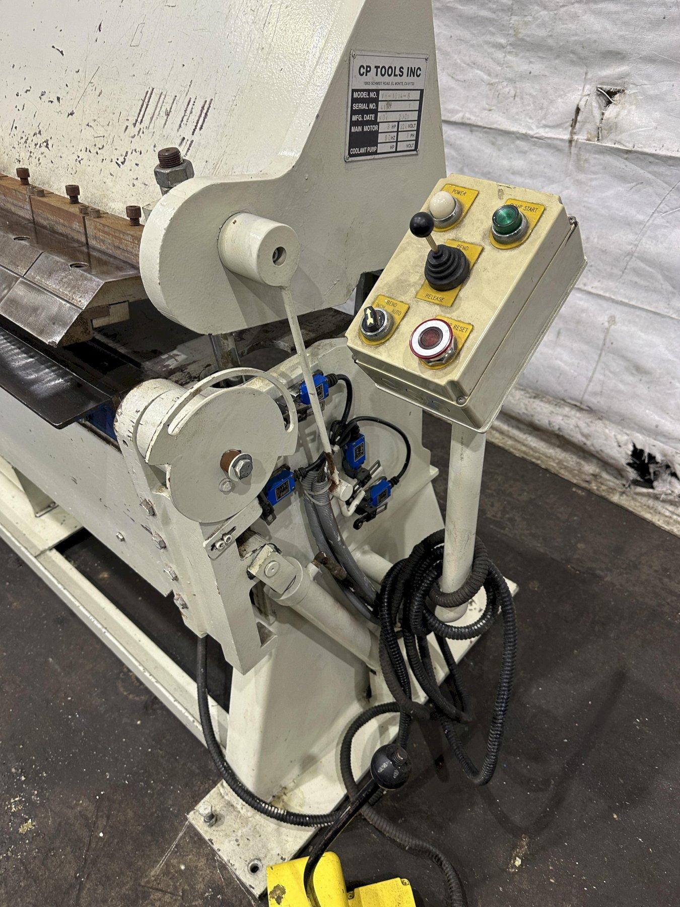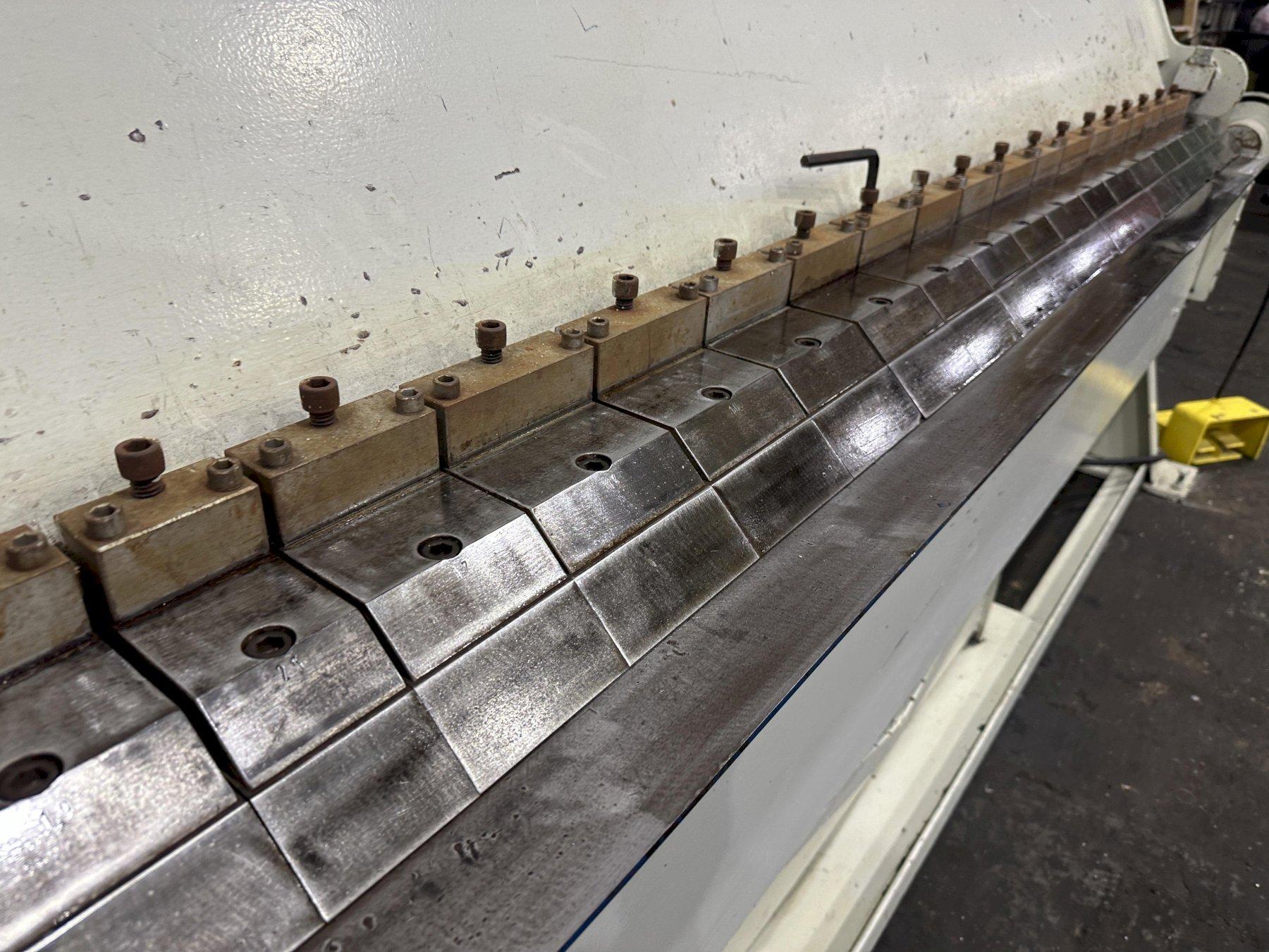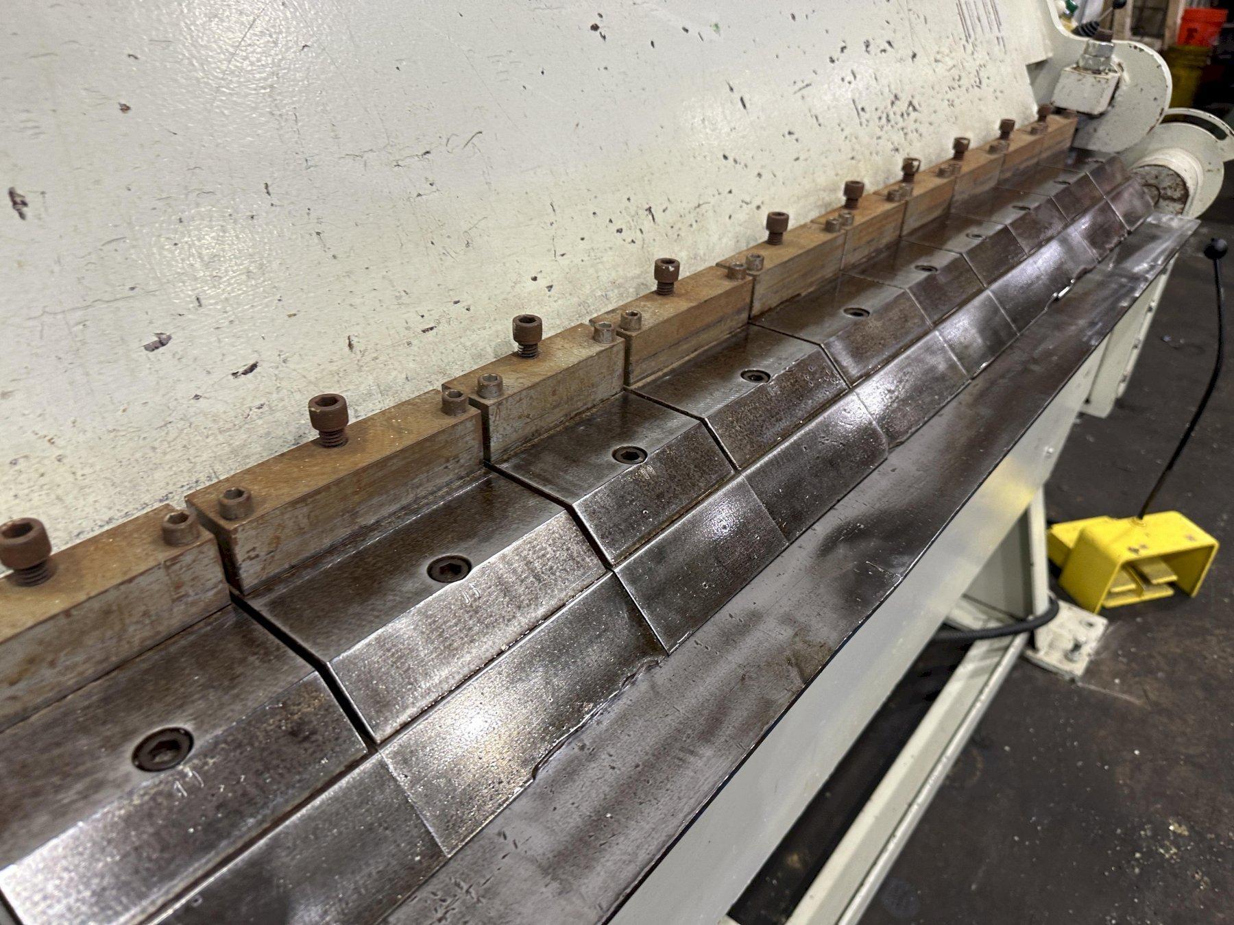 SERIAL ...................... 4175 MODEL ....................... VH-1014-6 YEAR NEW .................... 2001 BENDING LENGTH ..... 120" CAPACITY MILD STEEL ......... 14 GA CAPACITY STAINLESS .......... 18 GA MAXIMUM DEGREE OF BEND ...... 0 TO 135 DEGREES BEAM ADJUSTMENT ............. 1" REVERSE BEND ................ 1/2" MINIMUM NUMBER OF 3" FINGERS ........ 6 NUMBER OF 4" FINGERS ........ 4 NUMBER OF 5" FINGERS ........ 10 NUMBER OF 6" FINGERS ........ 6 CLAMPING .................... HYDRAULIC ELECTRIC FOOT PEDALS ........ 4 OPERATOR CONSOLE ............ YES HYDRAULIC MOTOR ............. 3 HORSEPOWER FROM AURBUN COLLAGE .. HARDLY USED |