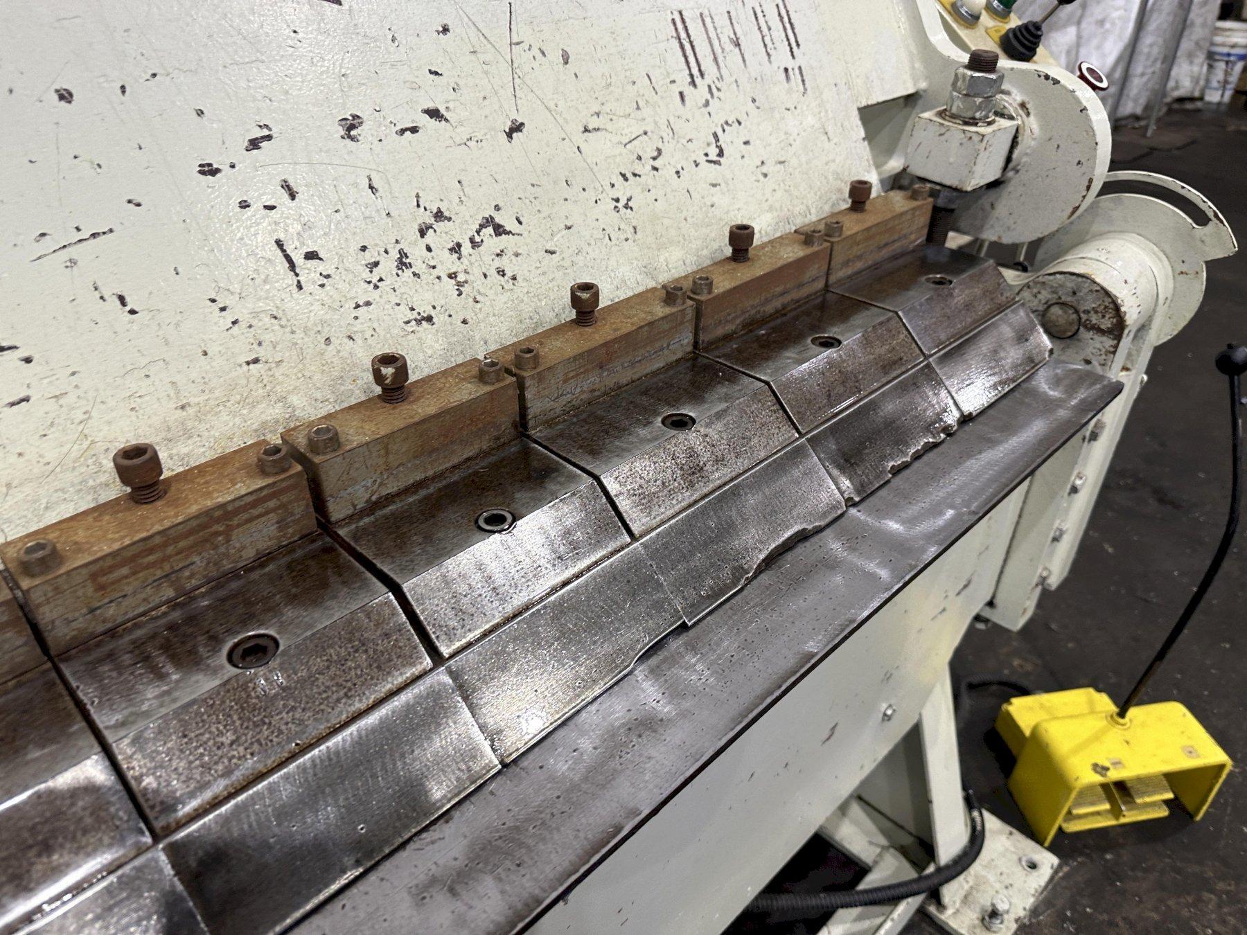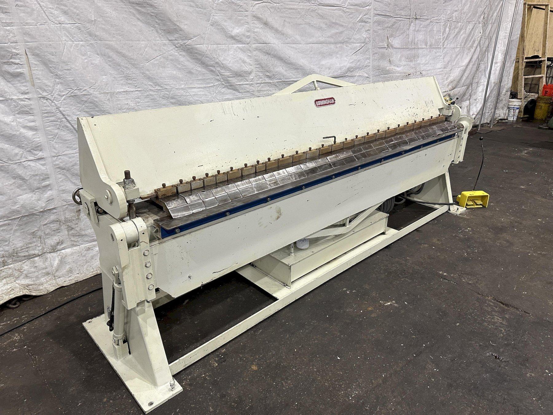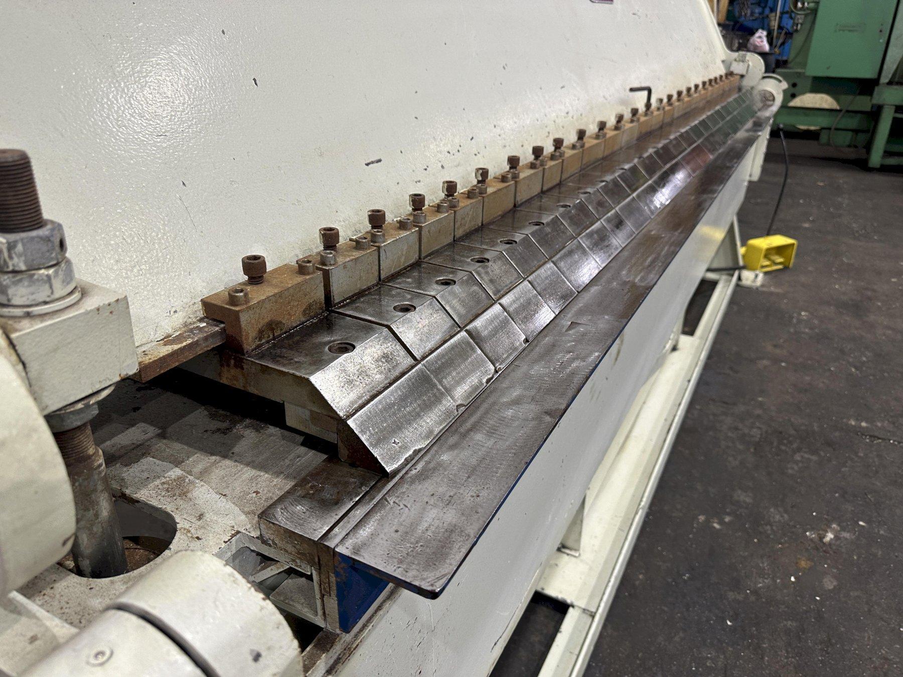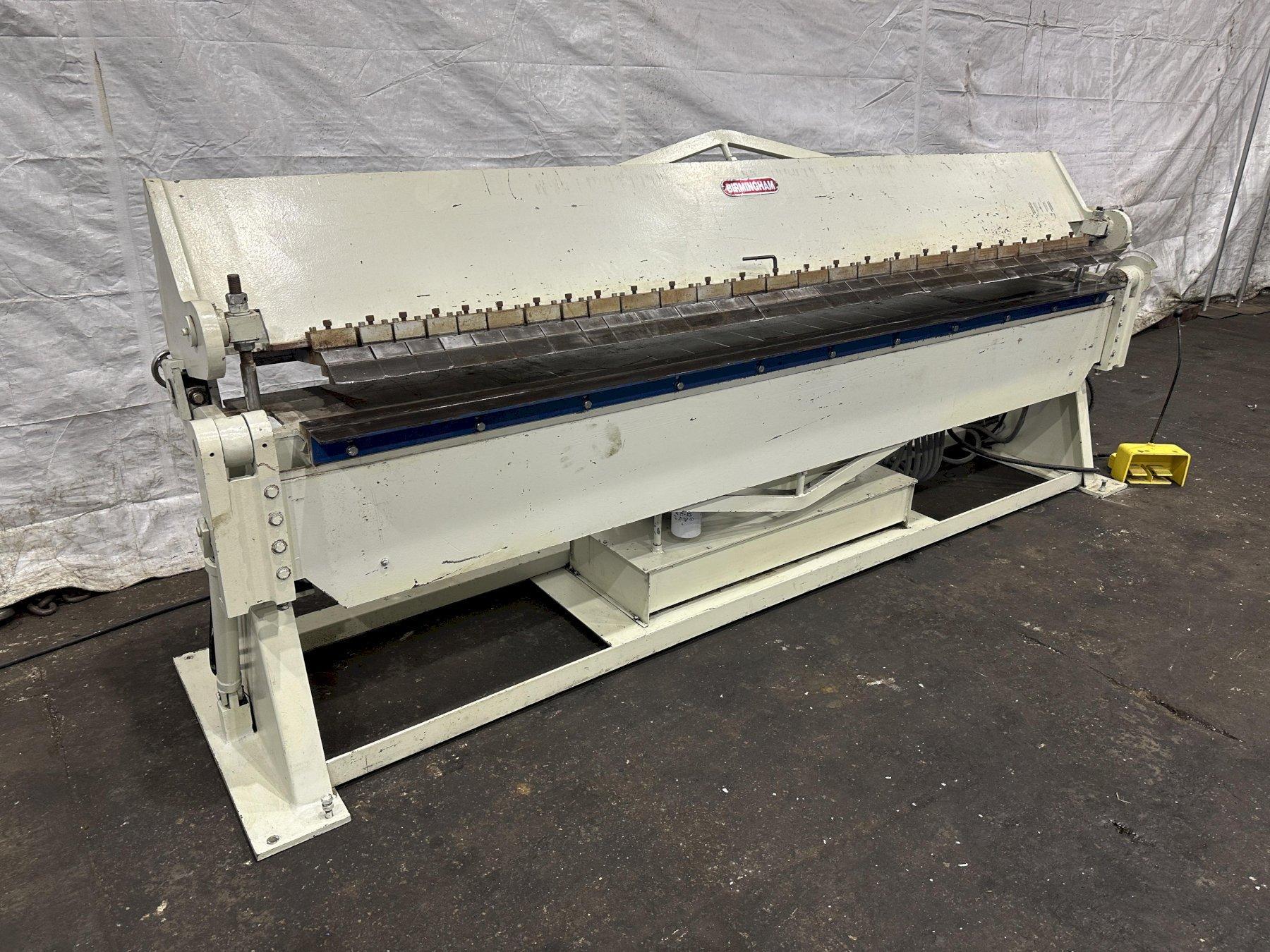 SERIAL ...................... 4175 MODEL ....................... VH-1014-6 YEAR NEW .................... 2001 BENDING LENGTH ..... 120" CAPACITY MILD STEEL ......... 14 GA CAPACITY STAINLESS .......... 18 GA MAXIMUM DEGREE OF BEND ...... 0 TO 135 DEGREES BEAM ADJUSTMENT ............. 1" REVERSE BEND ................ 1/2" MINIMUM NUMBER OF 3" FINGERS ........ 6 NUMBER OF 4" FINGERS ........ 4 NUMBER OF 5" FINGERS ........ 10 NUMBER OF 6" FINGERS ........ 6 CLAMPING .................... HYDRAULIC ELECTRIC FOOT PEDALS ........ 4 OPERATOR CONSOLE ............ YES HYDRAULIC MOTOR ............. 3 HORSEPOWER FROM AURBUN COLLAGE .. HARDLY USED |