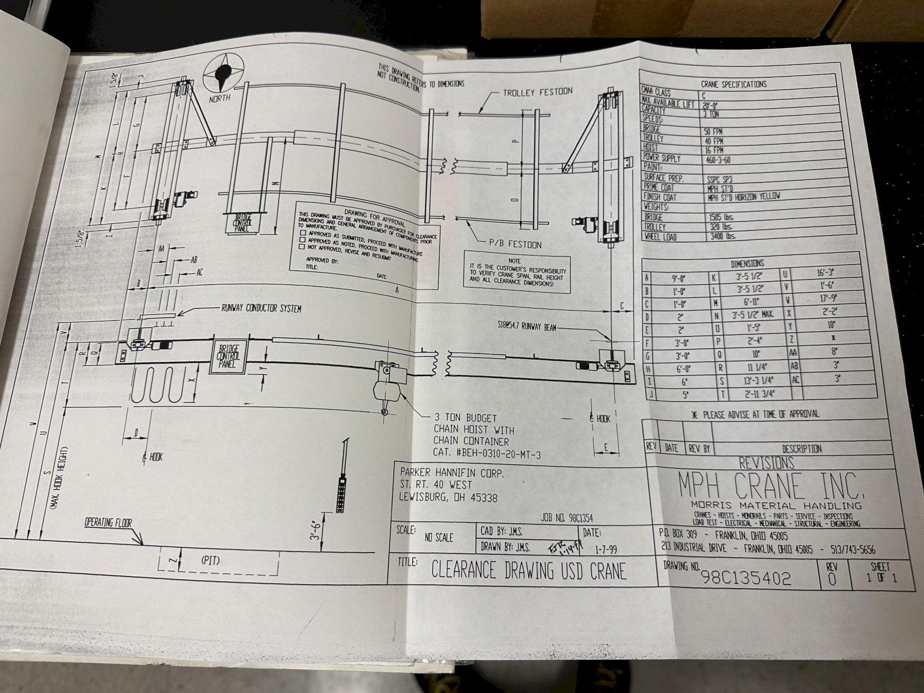 3 TON X 14' WIDE X 130' LONG MPH / BUDGIT OVERHEAD FREE STANDING CRANE SYSTEM: STOCK #20675