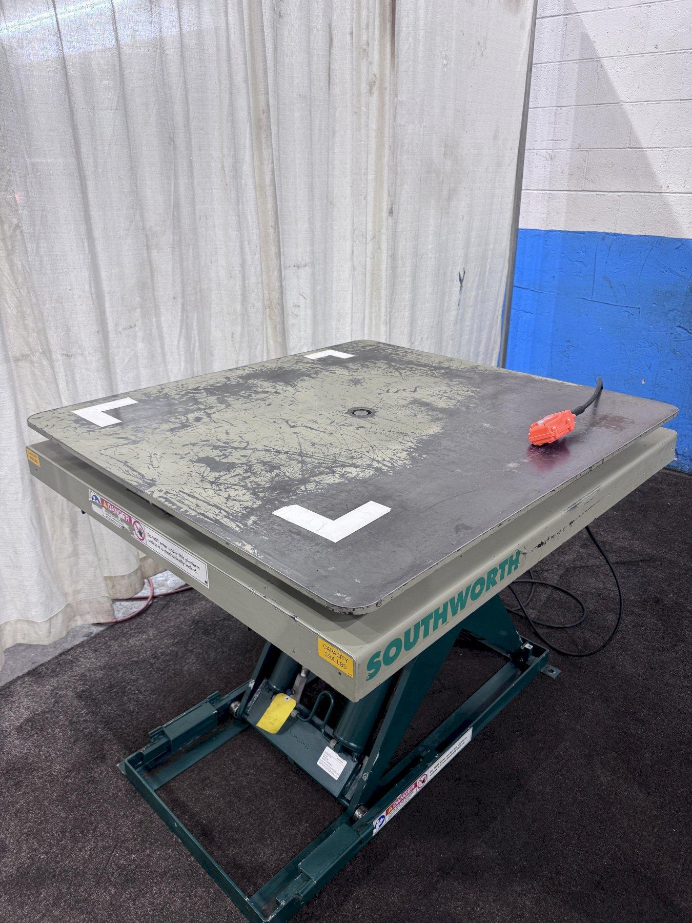 SERIAL ...................... 4 MODEL ....................... LS4-36 CAPACITY .................... 3500 LBS TABLE AREA .................. 48" X 40" SWIVEL TABLE AREA ........... 48" X 40" BASE AREA ................... 24" X 48" LOWERED HEIGHT .............. 6-3/4" RAISED HEIGHT ............... 42-3/4" LOCKING PINS EVERY 90 DEGREES .. YES PHASE ....................... 1 CYLINDERS .................... 2 CONTROL ..................... PUSH BUTTONS VOLTAGE ..................... 110 TOP TABLE ROTATES ........... YES MOTOR ....................... 1/2 |