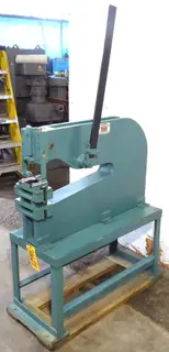 MODEL: 34 SERIAL NUMBER: 357 7 58 GENERAL SPECIFICATIONS Capacity: 8 Ton Punch Capacity: 1/2" Round Thru 3/16" Mild Steel 1-3/4" Round Thru 12 Gauge Depth Of Throat: 24" Height Of Throat-At Ram: 10" Length Of Stroke: 1" Die Space, Less Die Shoe Support: 10" Die Space, With Die Support In Position: 6" Diameter Of Punch Shank Hole In Ram: 1" Depth Of Punch Shank Hole In Ram: 1-1/4" Slug Clearance: 3" x 5" Bed Plate Holes-Center To Center: 6-3/4" Approximate Weight: 750 Lbs. F.O.B. Cincinnati, Ohio ALL SPECIFICATIONS SUBJECT TO VERIFICATION BY PURCHASER |
