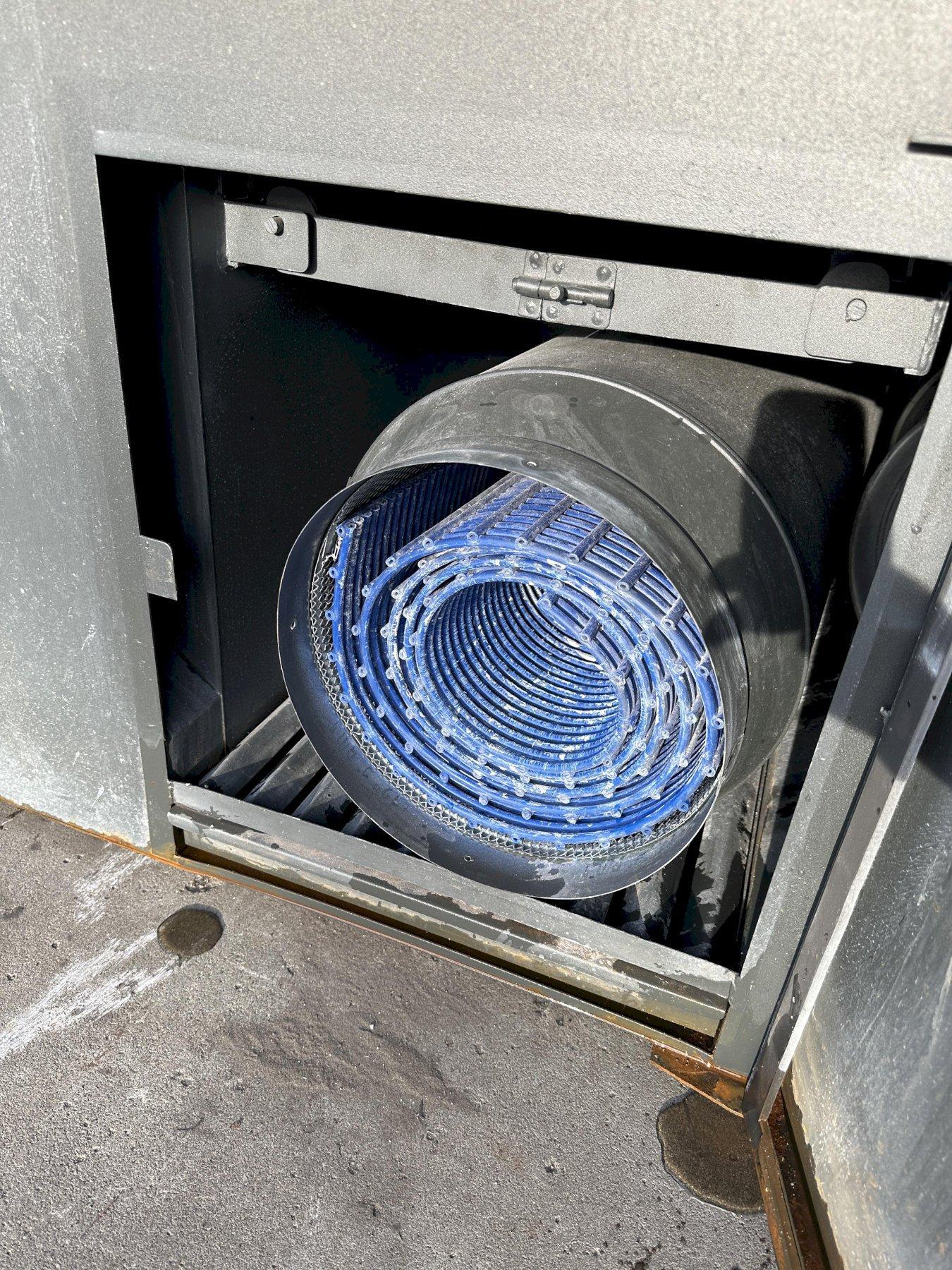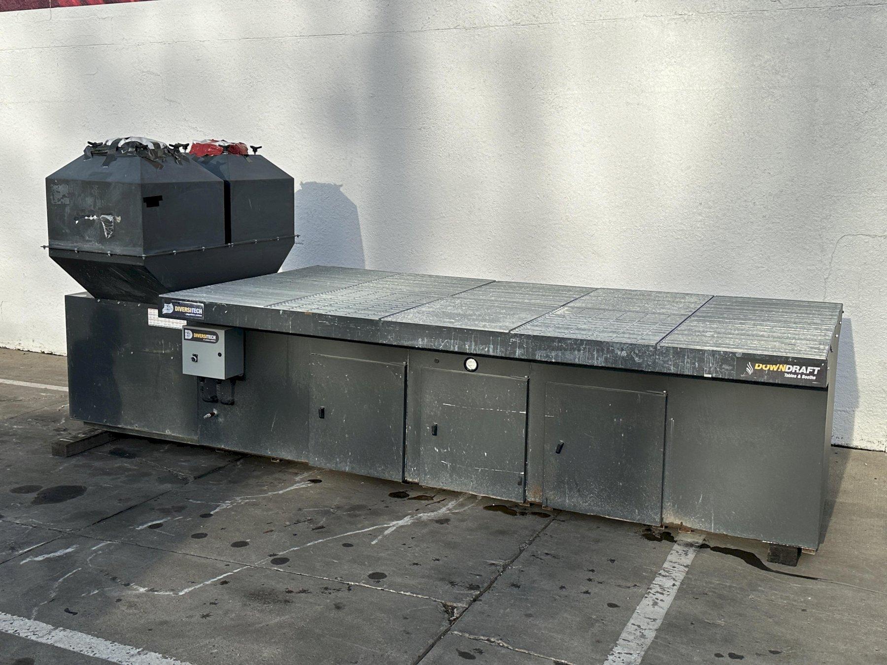 SERIAL .... S34506 MODEL .... DD-5X10 YEAR NEW .. AIR FLOW ....8600 CFM STATIC PRESSURE ... 4.0 FACE VELOCITY .... 338 WORKING SURFACE LENGTH 120" WORKING SURFACE WIDTH .... 60" NOISE ... 85 db MULTI STAGES SPARK ARRESTANCE .. YES REVERSE PULSE CLEANING .. YES EXHAUST DIAMETER ... (2) @ 10" MOTOR HORSEPOWER ... 15