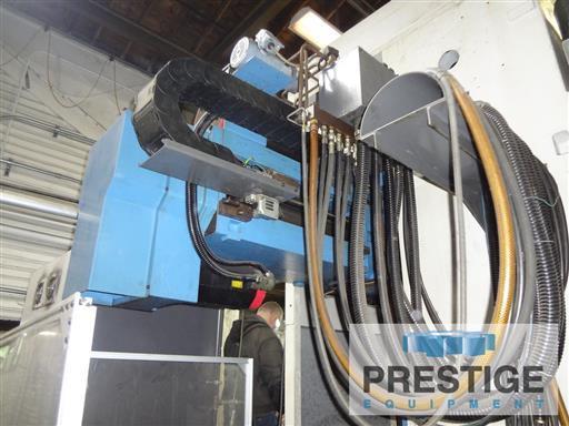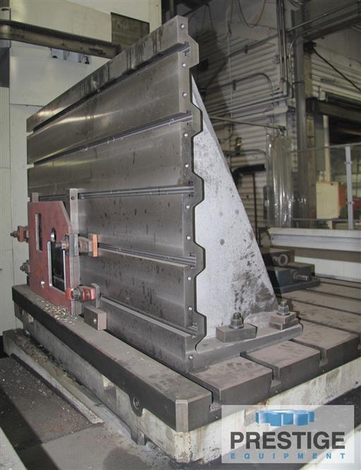 Boring Spindle Diameter 4.33" Milling Spindle Diameter 7.87" Spindle Taper #50 Vertical Head Travel, y 62.99" Table Travel, x 78.74" Saddle Travel, w 57.08" Spindle Travel, z 25.59" Built in Rotary Table 55.11" x 62.99" Table Index 0.001 Degree Rapid Traverse: x,y,z Axis 472.44 IPM Feed Rates: x,y,z Axis .04-196.85 IPM Table Load Capacity 14,300 LBS Spindle Speeds (2 Ranges) 5-3000 RPM Maximum Tool Weight in Tool Changer 55 LBS Floor Space, Approximate 232" L x 188" W Machine Height, Pendant Arm Raised 170" H Machine Weight, Approximate 64,900 Lbs Equipped With: Fanuc 16-MB CNC Control 40 Station Automatic Tool Changer Built In B-Axis Rotary Table 57.5" W X 35.5"H X 18"D T-Slotted Angle Plate Through Spindle Coolant Rigid Tapping Inch & Metric Switching Helical Interpolation Hardened & Ground Ways Spindle Oil Chiller Telescoping Way Covers Auto Lubrication System Chip Augor For Table Chip Conveyor 30 HP/ 25 HP Spindle Drive Motor Note: Under Power for Inspection! Must Be Moved! |