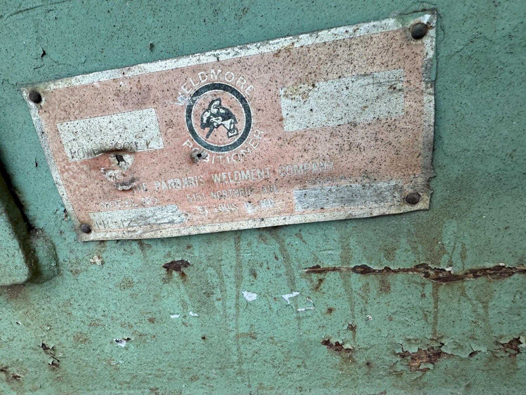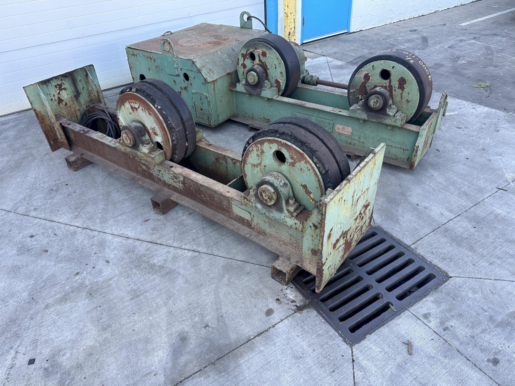 SERIAL # ...................25-3622-1 & 2 DRIVE MODEL ........................ PR-120 IDLER MODEL ........................ IR-120 NUMBER OF DRIVE ROLLS .............. 1 NUMBER OF IDLER ROLLS .............. 1 CAPACITY 1 DRIVE & 1 IDLERS ........ 60 TON MAXIMUM TURNING CAPACITY ........... 140,000 LB DIAMETER RANGE DRIVE ROLLS ..................... 36" TO 98" DIMATER RANGE IDLER ROLLS ... 16' MAXIMUM WHEELS ............................. RUBBER WHEEL DIAMETER ..................... 22" WHEEL FACE ......................... 8" FORWARD & REVERSING ................ YES SPEED .............................. VARIABLE CONTROL ............................ PENDANT MOTOR .............................. 2 HORSEPOWER |