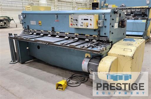Maximum Cutting Length 78.74" Maximum Cutting Thickness 1/4" Back Gauge Range 0.39" - 39.37" Gap Depth 2.56" Number of Holddowns 9 Strokes Per Minute 60 Main Motor (460 Volt) 7-1/2 HP Approximate Shipping Weight 10,500 Lbs. Equipped With: Digital Shear Control with Readouts Programmable Back Gauge (100 Steps) 96" Squaring Arm (1) 31.5" Front Support Arms Pneumatic Rear Sheet Supports Electric Foot Switch NOTE: Inspect In Our Philadelphia PA Warehouse |