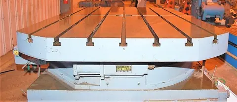 CAPACITY: T-Slotted Table Size 60" x 84" Rotary Table Height 19.5" Table Weight Capacity On Center 20,000 Lbs Table Weight Capacity Off Center 15,000 Lbs Table Weight Capacity On Center 20,000 LBS Number Of T-Slots 7 Width Of T-Slots, Top 1" Width Of T-Slots, Bottom 1.875" Distance Between T-Slot Centers 8" Center Keyway Width 1" Shot Pin Locations (Degrees) 90, 180, 270, 360 Approximate Shipping Weight 12,000 Lbs Equipped With: Air Lift, Hand Rotation 4-Position Shot Pin 1-Degree Graduated Scale 360 Degree Scale with 1/2 Degree Increments Fixture Locating Keyway Degree Increments Fixture Locating Keyway NOTE: Inspect In Our Philadelphia PA Warehouse |