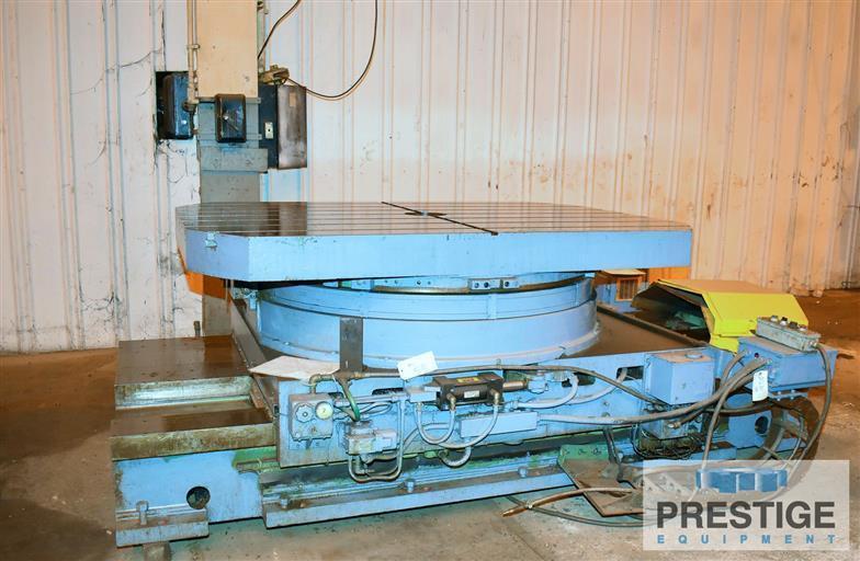 T-Slotted Table Size 60" x 84" Rotary Table Height 19.5" Slide Height 22.5" Table & Slide Height Combined 42" Table Weight Capacity On Center 20,000 lbs Table Weight Capacity Off Center 15,000 lbs Table Infeeding Travel 48" Shipping Weight 21,100 lbs Equipped With: Pendant Controls 1 Degree Graduated Scale Air Lift Power Infeed Ballscrew Infeed 4-Position Shot Pin 15 HP Infeed Motor NOTE: Table Will Separate From Slide |