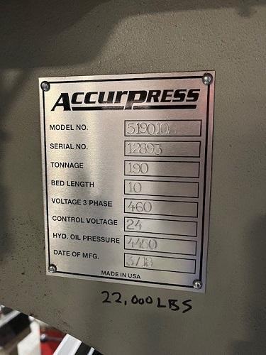 190 TON ACCURPRESS MDL. #519010 PRESS BRAKE, NEW 2018
