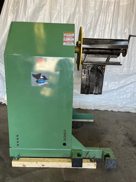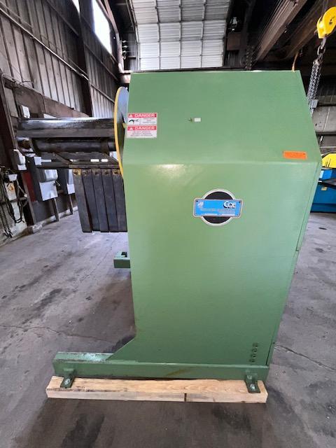 | MAKE ................. COE  SERIAL ............... 23387-4 MODEL ................ CPR-PO-6024 MOTORIZED ............ YES MAX COIL CAP ......... 6,000# EXPAN RANGE MIN MAX .. 15" TO 21" MAX COIL WIDTH ....... 24" PASS LINE ............ 69.5" # OF LEAFS ........... 3 # COIL KEEPERS ....... 3. HYRAULIC DRIVE MOTOR . YES BRAKE ................ YES MANUAL EXPANSION ..... YES LESS CONTROLS AND ONE VALVE |