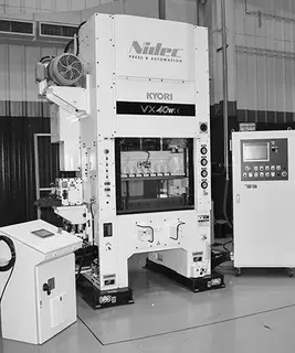 SPECIFICATIONS: Model Number........................................................... VX-40W Force × Distance off Bottom..................................... 400 kN Drive Arrangement.................................................... Flywheel w/ Dynamic Balancer Drive Location............................................................ Right Hand Side Approximate Press Weight........................................ 9,500 kg Shutheight Indicator Readout.................................... Metric Shop Air Pressure, Minimum.................................... 5.9 bar Stroke Length, Speed Range.................................... Variable from 16-50 mm in 7 distinct increments 16 mm @ 1000 SPM 20 mm @ 800 SPM 25 mm @ 600 SPM 30 mm @ 500 SPM 35 mm @ 400 SPM 40 mm @ 350 SPM 50 mm @ 260 SPM