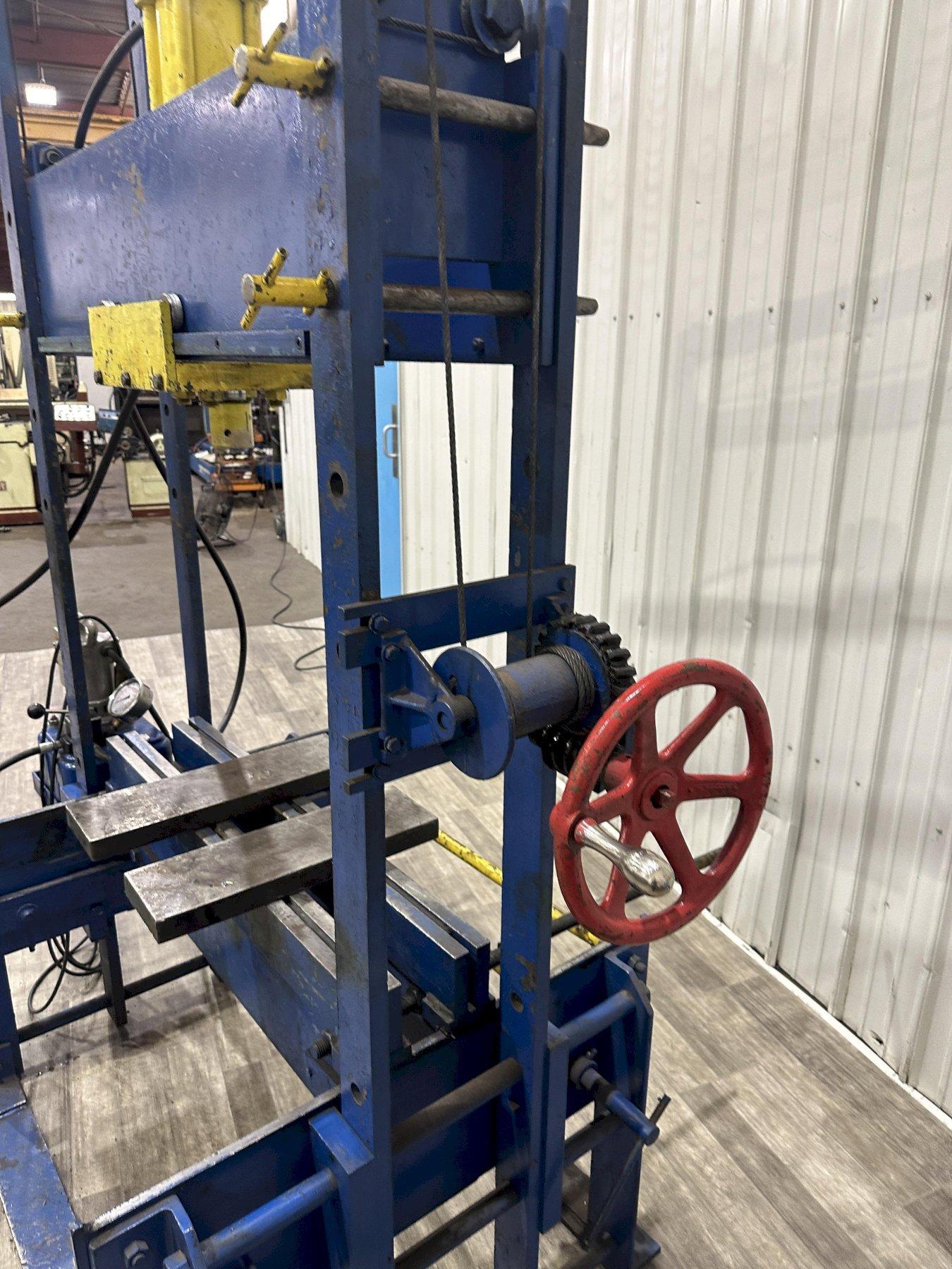 CAPACITY ............................... 1-1/4" STROKE OF HEADER SLIDE ................. 7" STOCK GATHER ........................... 3-3/4" HOLD OR RECEDE ......................... 1-1/2" DIE OPENING ............................ 2" WIDTH OF TOOL HOLDER POCKET ............ 2-7/16" DEPTH OF DIE POCKET .................... 12" WIDTH OF DIE POCKET .................... 8" LENGHT OF DIE POCKET ................... 8" AIR CLUTCH ............................. YES LUBE SYSTEM ............................ YES HORSEPOWER MOTOR ....................... 15 |