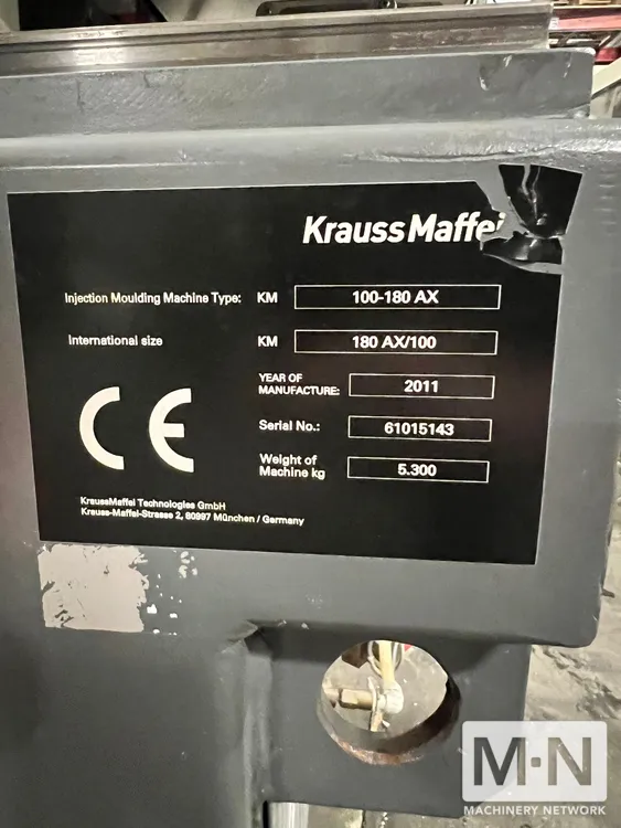 OverviewDescription110 TON 3.7 OZ KRAUSS MAFFEI MODEL 100-180AX ELECTRIC INJECTION MOLDING MACHINE MFG 2011 APPROX 49,194 HOURS