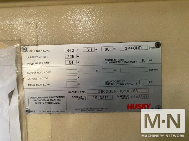 OverviewDescription672 TON 80 OZ HUSKY MODEL G600GENRS100/85 PLASTIC INJECTION MOLDING MACHINE USED MFG 2000 ACCUMULATORS FOR HIGH SPEED INJECTION |