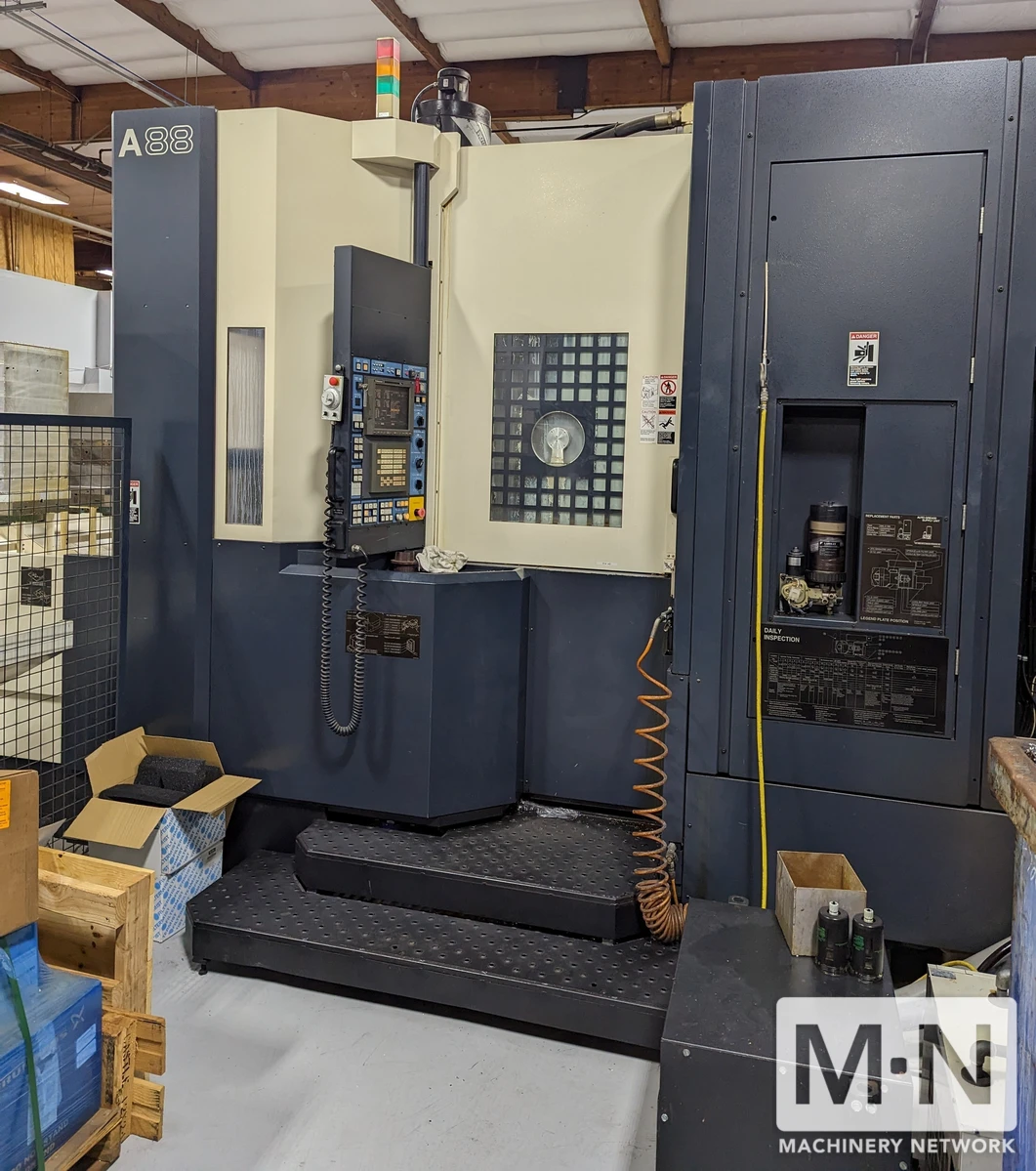 OverviewDescriptionMakino A88 4-Axis FMS CNC with Linear Pallet System, 3 units from 1999 & 1 from 2004. Features 40 hp, 18000 rpm spindle, 188 ATC, and Pro-3 control. Includes tool holders, tombstones, manuals, spare parts, presetter, and tool heater. Used condition. Makino Pro-3