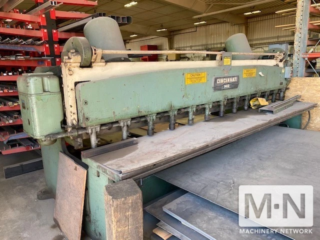 OverviewDescriptionDiscover the robust CINCINNATI 1412 Mechanical Shear: 12' blade, cuts 0.1875" thick, mech operated, 24" back gauges, 7.5 hp, 60 SPM. Enhance your metalwork with this classic 1956 used powerhouse. |