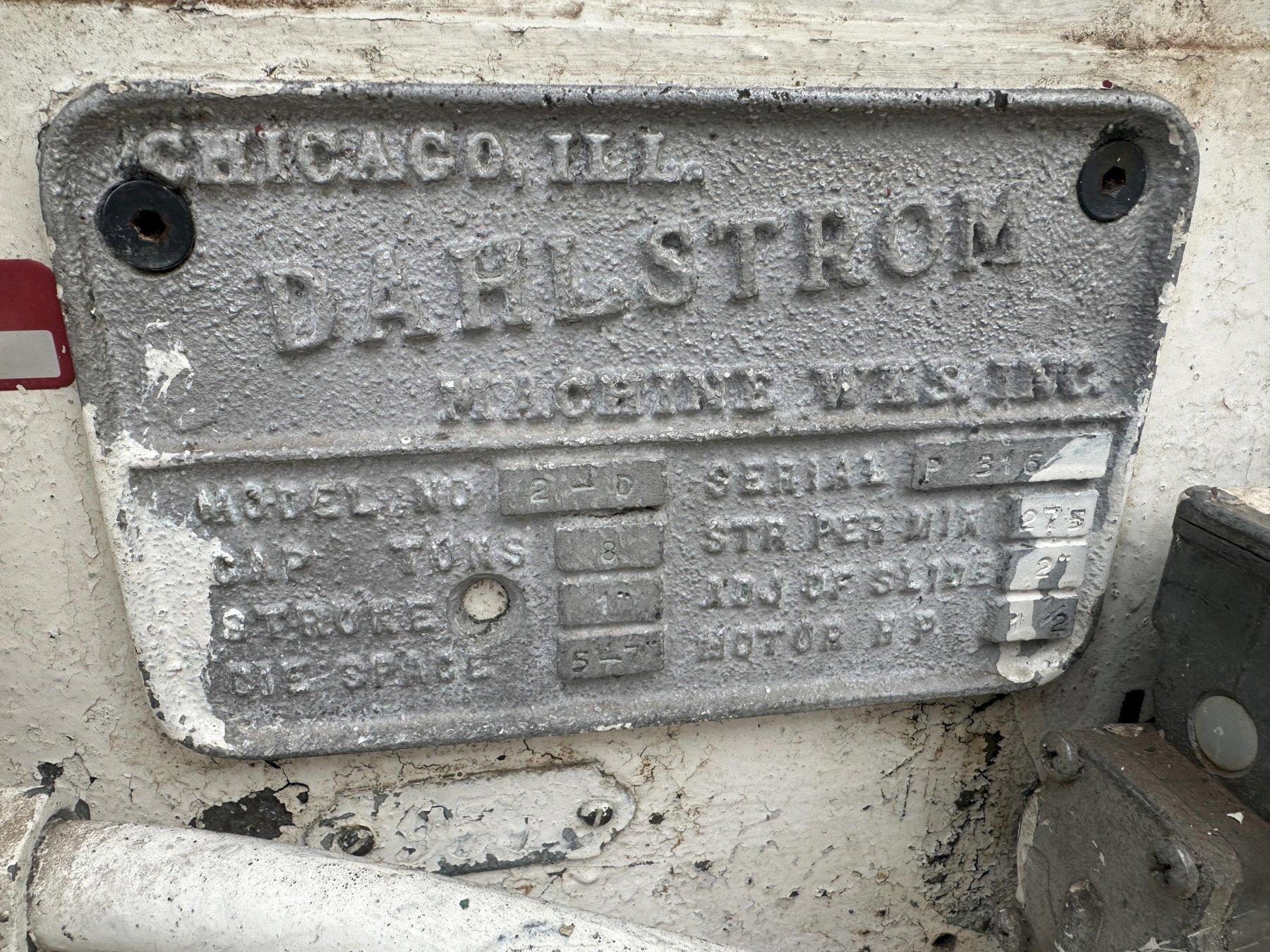 SERIAL ......................... P315 MODEL .......................... 2-D STROKE ......................... 1" SHUT HEIGHT .................... 5" TO 7" DISTANCE BETWEEN POSTS L X R ... 11-1/4" DISTANCE BETWEEN POSTS F X B ... 5-1/4" DISTANCE BETWEEN QUIDE POST .. 9-1/2" PLATEN R X L ................... 19" PLATEN F X B ................... 22" POST DIAMETER .................. 1-3/4" AIR CLUTCH & BRAKE ....................... YES MOTOR .......................... 2 HORSEPOWER |