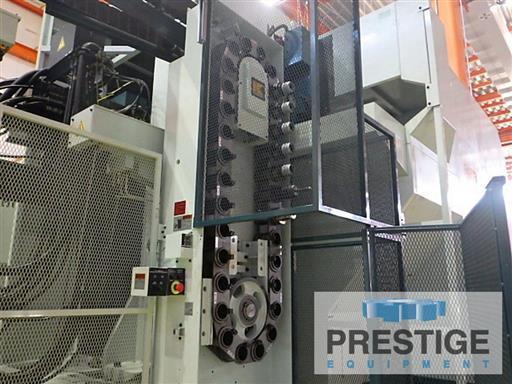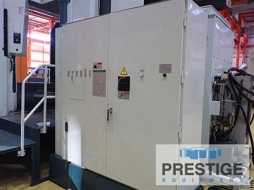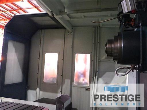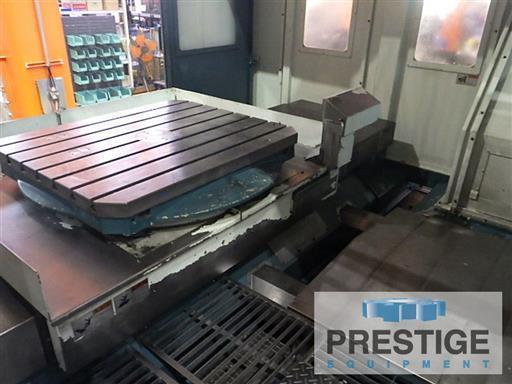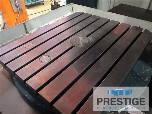 Spindle Diameter 7.87" Table Travel, X-Axis 59.05" Vertical Travel Y-Axis 47.2" Saddle Travel, W-Axis 35.4" Spindle Travel, Z-Axis 15.74" B-Axis .001 degrees Table Size 47.2" x 39.37" Table Capacity 7700 LBS Spindle Speeds, 2- Ranges 12,000 RPM Spindle Drive 40 HP Spindle Taper #50 BT Tool Changer 30 ATC Machine Dimensions, W x D.............. 198" x 233" 198" x 233" Machine Height 160" Machine Weight 66,000 LBS Equipped With: Fanuc 16i-MB 4-Axis CNC Control 30-Station Automatics Tool Changer Full 4-Axis B-Axis Table Coolant Thru Spindle Full Chip & Splash Enclosure Chip Conveyor |