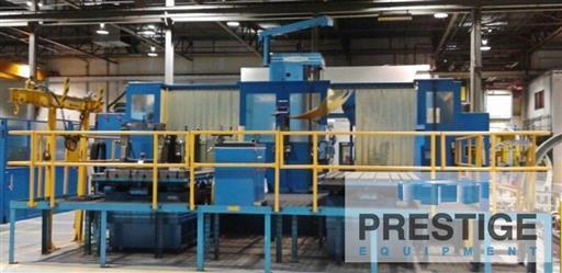 Spindle Diameter 7" Taper In Spindle #50 Vertical Travel Of Head, Y-Axis 115" Cross Travel Of Table, X-Axis 118" Spindle Travel, Z-Axis 60" Saddle Travel, W-Axis 96" Table Size 48" x 72" B-Axis, Table Rotation 360,000 Degrees Spindle Speeds: Equipped With: G & L 8000B CNC Control 120-Station Automatic Tool Changer (2) 48" x 72" Pallets with Shuttle System Ball Screw and Independent Servo Motors Steel Sliding Way Covers On X & W Axis Outrigger Table Supports Coolant System Chip Conveyor 75 HP Spindle NOTE: Inspect Under Power In Plant! |