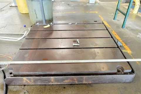 WORKING LENGTH OF PLATE ...... 62" WORKING WIDTH OF PLATE .... 55" PLATE HEIGHT ...... 5-1/2" OVERALL WIDTH ..... 61" OVERALL LENGTH ... 6" NUMBER OF T SLOTS ... 5 T SLOT CENTERS .... 11-1/2" T SLOT WIDTH AT TOP ...... 1-1/8" T SLOT DEPTH ..... 2-1/4" T SLOT WIDTH AT BOTTOM .... 2" COOLANT CHANNEL ON SIDES OF PLATE ... YES CONSTRUCTION ..... CAST IRON |