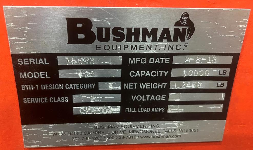 SERIAL .................. 35623 MODEL ..... 624 SERVICE CLASS ... B YEAR NEW .... 8/2013 CAPACITY ....... 15 TON |