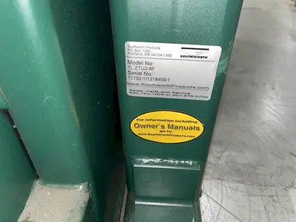 SERIAL ........ 71792-1/1218459-2 MODEL # ..... TLZTU2-85 YEAR NEW ............2013 CAPACITY ....... 2000 LB INSIDE DIAMETER ... 50" X 21" TILT RANGE ... 0 TO 85 DEGREES FLOOR TO BOTTOM RAISED ... 34" ELECTRIC FOOT PEDAL .. YES PHASE ..... 1 VOLTAGE ... 110 MOTOR HORSEPOWER .... 1 |