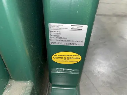 SERIAL ........ 71792-1/1218459-1 MODEL # ..... TLZTU2-85 YEAR NEW ............ 2013 CAPACITY ....... 2000 LB INSIDE DIAMETER ... 50" X 21" TILT RANGE ... 0 TO 85 DEGREES FLOOR TO BOTTOM RAISED ... 34" ELECTRIC FOOT PEDAL .. YES PHASE ..... 1 VOLTAGE ... 110 MOTOR HORSEPOWER .... 1 |