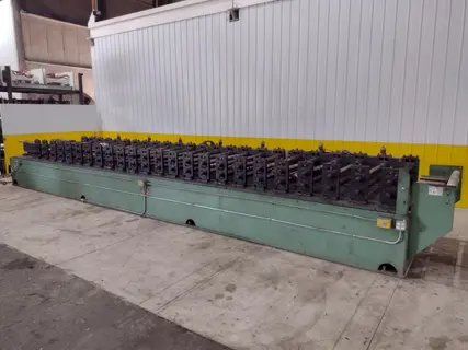 MODEL ..................... 24 STAND DOOR PANEL STANDS .................... 24 ARBOR ..................... 3" ROLL SPACE ................ 46" CAPACITY .................. .019" TO .035" HORIZONTAL CENTERS ........ 14" VERTICAL CENTERS .......... 5.5" TO 7" BASE TO LOWER SPINDLE ..... 5.5" DRIVE GEARBOXES ........... 4 GEARBOX RATIO ............. 15:1 PASS LINE ................. 39" EXIT SIDE ROLLS ........... YES WITH TOOLING MOTOR ..................... 40 HP DC WITH CONTROLS |