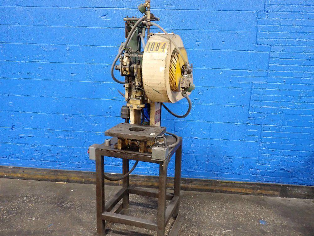 SERIAL .............................. 123541 CAPACITY ............................ 10 TONS STROKE .............................. 2" SHUT HEIGHT ......................... 6-1/2" RAM ADJUSTMENT ...................... 1-1/2" STROKES PER MINUTE .................. 192 THROAT .............................. 14 BED AREA ............................ 11-1/4" X 8-3/8" RAM AREA ............................ 5-1/2" X 3" OPENING THRU BACK ................... 5" SINGLE THUMB BUTTONS ................... YES AIR CLUTCH & BRAKE .................. YES PHASE ..... 1 VOLTAGE .... 110 MAIN MOTOR .......................... 3/4 HORSEPOWER |