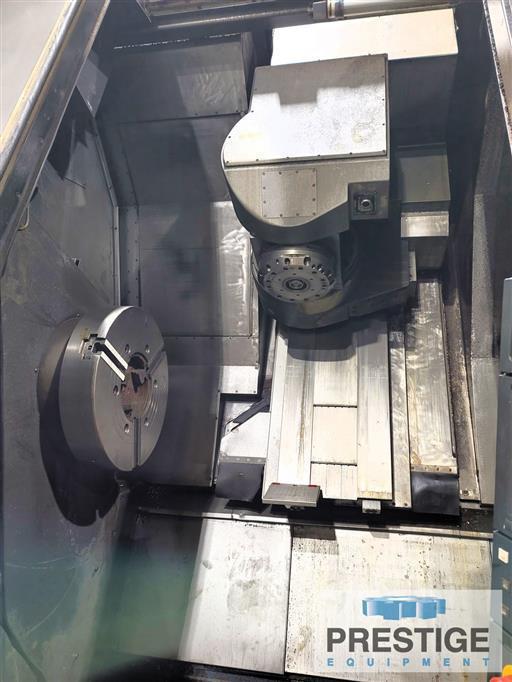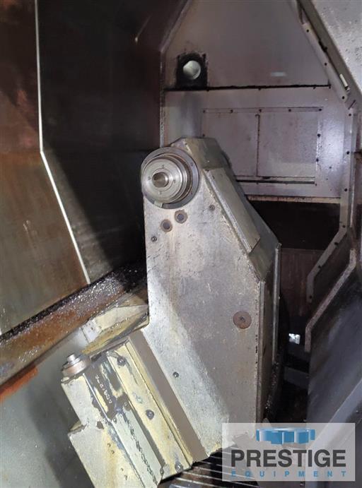 Max Swing Of Workpiece 37.00" Max Swing Over Cross Slide 25.59" Max Turning Dia. 37.00" Distance Between Centers 103.1" Max Turning Length 81.5" Spindle Speeds (2 Ranges) 15-1500 RPM Main Motor 50 HP / 40 HP Y-Axis Travel 11.8" + 5.9" X-Axis Travel 39.68" Z-Axis Travel 84.6" B-Axis Rotation Range +120/-105 Deg. B-Axis Indexing Angle 0.001 Degree Milling Spindle Speeds 6000 RPM Milling Spindle Motor 20 HP Automatic Tool Changer 120 ATC Tooling Type CAPTO C8 Equipped With: Mori Seiki MSG-501 CNC Control 23.5" 3-Jaw Chuck B-Axis Swivelling Milling Spindle C-Axis Contouring Main Spindle 120-Position Automatic Tool Changer Assorted Tooling Tailstock Chip Conveyor |