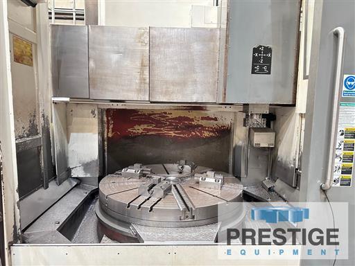 Table Diameter 62.99" Maximum Swing 78.74" Maximum Turning Diameter 78.74" Maximum Turning Height 55.11" Vertical Stroke of Ram Head............ 35.43" 35.43" X-Axis Horizontal Ram Travel 75" Z-Axis Vertical Ram Travel 35.43" Vertical Travel of Cross Rail 27.8" Live Spindle Milling Speeds 3000 RPM Live Spindle Milling Motor 25 HP Spindle Taper BT #50 Size of Ram 8.66" x 8.66" Table Speeds .7-280 RPM Number of Table Speeds 2 C-Axis, Table Indexing .000 degrees Table Weight Capacity 22,100 Lbs Floor Space 208" x 178" Overall Height 204" Approximate Machine Weight 74,900 Lbs Equipped With: Fanuc System 31i-A with 10.4" Color LCD Display Fanuc Digital AC Table and Servo Drives 24-Station Automatic Tool Changer 63" 3-Jaw Hydraulic & 4-Jaw Manual Combination Chuck C-Axis for Milling & Drilling Operations Miscellaneous Turning and Milling Tools Chip Conveyor 60 HP AC Main Table Drive Motor Glass Scale Feedback on All Axes Through Spindle Coolant |