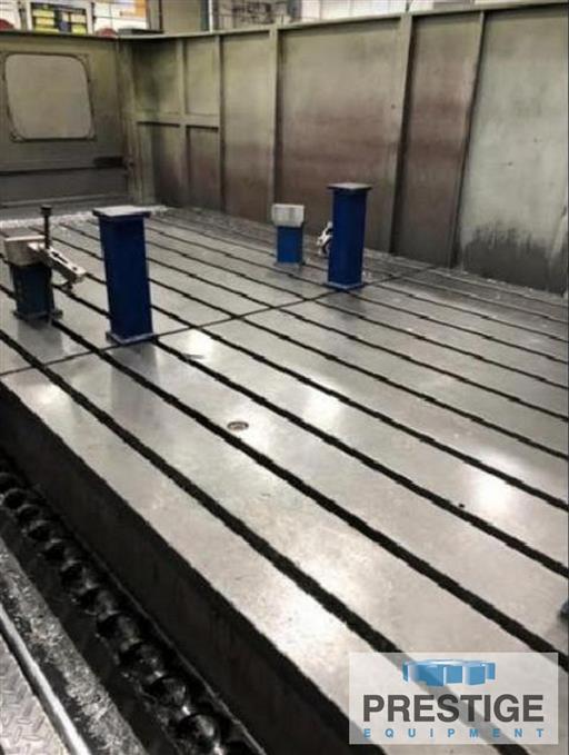 X-Axis, Table Travel 165.35" Y-Axis, Spindle Head Travel 90.55" Z-Axis, Vertical Travel 36.22" Distance Between Columns 94.48" Minimum Distance Spindle to Table 5.9" Maximum Distance Spindle to Table 42.12" Table Size 80.70" x 165.35" Table Load Capacity 28,600 lbs Spindle Taper #50 Spindle Speeds (2-Gear Ranges) 6000 RPM Spindle Motor 35 HP Rapid Feed Rates X,Y,Z Axis 590 IPM Cutting Feed Rate 275 IPM Machine Weight 86,680 Lbs Equipped With: FANUC 18iMB CNC Control 40 Station Automatic Tool Changer Box Way Construction Telescopic Steel Way Covers on All Axes Spindle Chiller Full Splash Guards Chip Conveyor NOTE: New OEM Spindle in 2024! New Ball Screws on X & Z Axis November 2025 All New Thrust Bearing X & Z in November 2025 Inspect Under Power in Midwest Plant! |