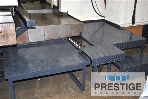 Spindle Diameter 4.33" Extended Quill Diameter 7.87" Taper In Spindle #50 Vertical Head Travel, Y-Axis 47.24" Table Cross Travel, X-Axis 59.05" Spindle Travel, Z-Axis 15.74" Saddle Travel, W-Axis 27.55" Table Size, Built-In Rotary 39.37" x 39.37" Table Indexing 0.001 Degree Rapid Traverse (X,Y,Z Axes) 472.4 IPM Feed Rates .04-236.2 IPM Table Load Capacity 6,600 LBS Spindle Speeds (2 Ranges) 20-3000 RPM Spindle Motor 30 HP Floor Space, L x W x H 173" x 174" X 126" Machine Weight 39,600 lbs. Equipped With: Tosnuc 888 CNC Controls Full B-Axis Rotary Table 30 Position Automatic Tool Changer Thru Spindle Coolant Chip Conveyor |