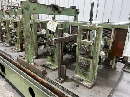 SERIAL ...................................... Y10498-0905 MODEL ....................................... M3 YEAR ........................................ 1995 NUMBER OF STANDS ............................ 16 SPINDLE DIAMETER ............................ 3" ROLL SPACE .................................. 18" HORIZONTAL DISTANCE BETWEEN SPINDLE ......... 24" DISTANCE BASE TO CENTER OF LOWER SPINDLE .... 10" MIN VERTICAL CENTER DISTANCE BTWN SPINDLES .. 5-1/2" MAX VERTICAL CENTER DISTANCE BTWN SPINDLES .. 9" EQUAL GEARED ................................ YES RAFTED ... YES VARIABLE DRIVE MOTOR ........................ 75 HP |