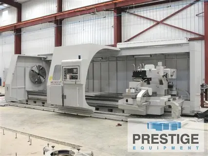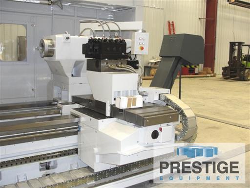 Swing Over Bed 51.18" Swing Over Cross Slide 38.58" Overall Bed Width 51.18" Maximum Turning Length 472.44" Max. Work Piece Weight w/ Tailstock 22,000 Lbs Spindle Speeds 1-735 RPM Spindle Hole Diameter 6.02" Spindle Nose Mount A2-11 X-Axis Travel 25.59" Z-Axis Travel 472.44" Main Motor 80 HP/100 HP Quill Diameter 9.44" Quill Stroke 9.05" Quill Taper #6 MT X/Z Rapid Traverse 393.70 IPM Overall Dimensions 647" x 134" x 106" Machine Weight 99,500 Lbs. Equipped With: Fanuc OiTF Plus Control with 10.4" LCD & Manual Guide i Four Wide Guide Ways in One Piece for Heavy Loading Automatic Speed Changer Chuck Sliding Guard with Interlock Device Motorized Tailstock Travelling Front Single Door Interlocked with carriage 4-Position HP-350 Hydraulic Turret Coolant System Lubrication System Low Voltage Circuit System Linear Scales for Z Axis 1.96"-15.7" Steady Rest 17.96"-23.62" Steady Rest Full Length Chip Conveyor NOTE: Full 1-Year Parts on Machine Full 2-Year Parts on CNC Control **8 Month Lead Time from Order ** |