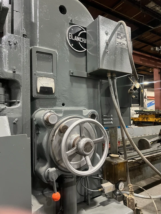s/n 11679 Magnetic Chuck Diameter ............... 36" Max. Swing Inside Guards .............. 38" Height Under New Wheel ................ 18" Segmented Wheel Diameter .............. 20" Grinding Wheel Motor .................. 30 HP Table Speeds (6) ...................... 6-33 RPM Feeds ................................ .004-.080 TPM Wheel Speed 720 RPM Approx. Overall Weight ................ 17,000 Lbs EQUIPPED WITH: 36" Electromagnetic Chuck Segment Wheel Built-In Wheel Dresser Rapid Traverse on Head Incremental Downfeed Dry Base Machine 230/460/3/60 Electrics |
