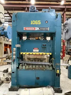 Used 150-ton Niagara Straight Side Mechanical Press Niagara Stamping Press Model SE2-150-60-36 Serial Number P53534 150-ton Metric Capacity 165-ton US Capacity 6" Stroke 27" Shut Height on Bed 7" Motorized Adjustment 60" LR x 36" FB Bed Area 60" LR x 36" FB Slide Area 20-100 VSPM Equipment and Features Air Clutch and Brake Air Counterbalances Recirculating Lube System T-Slotted Ram and Bolster Light Curtains Free Standing Console T-Stand Palm Buttons Windows Floor Standing This Used 150-ton Niagara Straight Side Mechanical Stamping Press Can Be Seen Under Power In The S&G Press Livonia Michigan Warehouse. Used Straight Side Double Crank Reconditioned and Rebuilt Mechanical Press Clearing Niagara Mechanical Metal Stamping Press For Sale