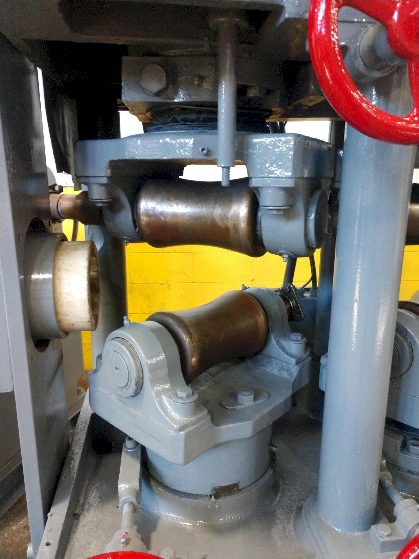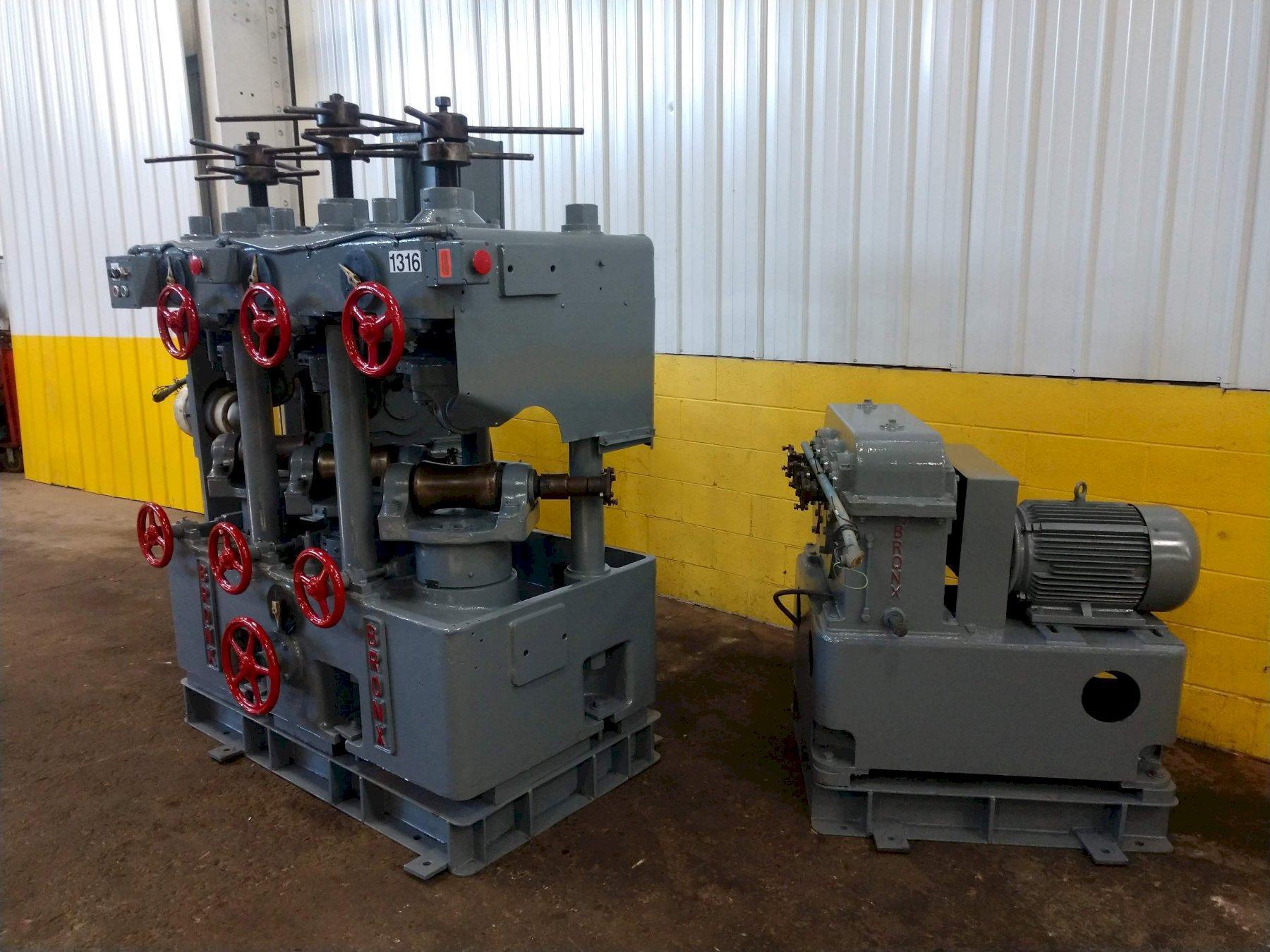 Stock # 14364 Specifications: Model ..................... CR6 Number of Rolls ........... 6-Roll Roll Size ................. 5" Wide x 9" Long Roll Design ............... Cross Roll, Vertically Opposed Maximum Diameter .......... 3" Minimum Diameter .......... .394" Maximum Wall Thickness .... .197" Maximum Diameter Admitted . 3" Feed Direction ............ Right to Left Manual Roll Adjustment .... Yes Number of Gearboxes ....... 2, 10 HP Each MACHINE: 72” X 46” X 81” HIGH GEAR BOX: 50” X 40” X 53” HIGH EACH WEIGHT: 12,550 LBS **Temporary Specifications Subject to Revisions** **PRICE QUOTED AS IS WHERE IS SUBJECT TO PRIOR SALE** **ALL SPECIFICATIONS ARE SUBJECT TO BUYERS VERIFICATION** |