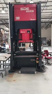 All specifications are assumed to be correct but must be confirmed by the purchasing entity.,TONNAGE 220 Tons DESIGN Straight Side UP OR DOWNSTROKE? Downstroke STROKE 9.8 Inches DAYLIGHT 25 Inches BED (L-R) 50 Inches BED (F-B) 33 Inches POWER 40 kW 220 Ton Amada SDE-2025 Servo Electric Press New 2008 All specifications are assumed to be correct but must be confirmed by the purchasing entity.,The Amada Servo Electric SDE-Series is Designed for Multi-Functionality that includes Blanking, Deep Drawing, Coining, Bending, Tryout, Forming and Progressive Die Production All specifications are assumed to be correct but must be confirmed by the purchasing entity. |