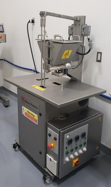 All specifications are assumed to be correct but must be confirmed by the purchasing entity.,Performance: Piece weight ~6 g (range typically 1.0–5.5 g plus optional center weight up to 20%); mould ~30 cavities All specifications are assumed to be correct but must be confirmed by the purchasing entity.,Control: Integral control panel with push‑button controls; 24 VDC control voltage All specifications are assumed to be correct but must be confirmed by the purchasing entity.,Accessories: Twin stainless steel heated hoppers; stainless pump parts set; insulation cases All specifications are assumed to be correct but must be confirmed by the purchasing entity.,Utilities: Power – main drive 0.25 kW; heaters total ~2.5 kW; electrical 480 V 3‑phase ±10%, 60 Hz; fan/filtered cooling panel All specifications are assumed to be correct but must be confirmed by the purchasing entity.,Dimensions & Weight: Frame on casters; weight ~1,050 lbs (477 kg) All specifications are assumed to be correct but must be confirmed by the purchasing entity.,Installed Options Twin electrically heated stainless steel hoppers with jackets Volume-adjustable pump set for varied piece weights Integral control panel with 24 VDC push-button control Insulation cases on hoppers All specifications are assumed to be correct but must be confirmed by the purchasing entity.,Feature Spotlight True mechanical volumetric depositor for precision candy formation from cooked syrup Small-batch/research design ideal for development and pilot production Highly mobile mild-steel caster-mounted frame Heated hoppers and pump system enable consistent output control across weights All specifications are assumed to be correct but must be confirmed by the purchasing entity. |