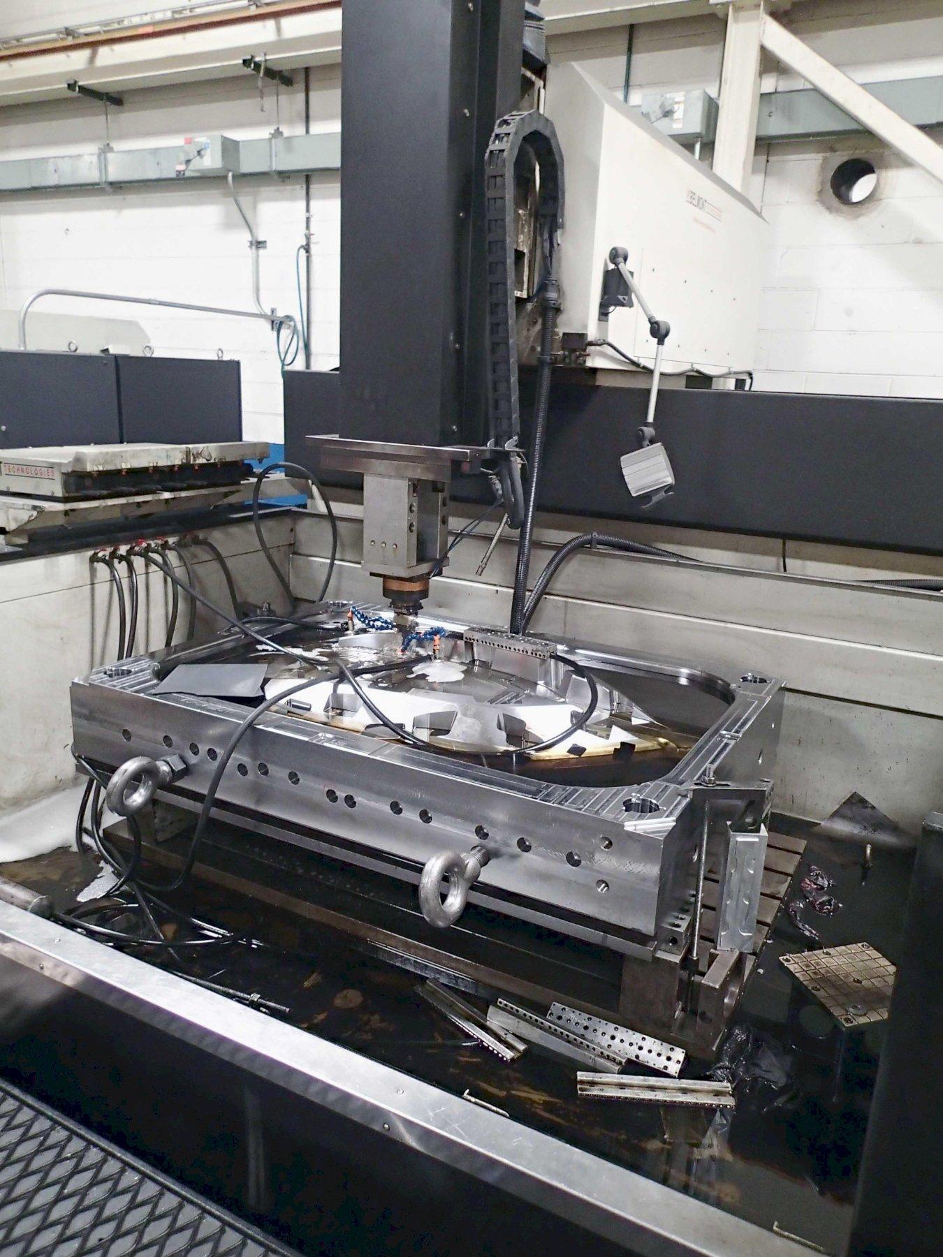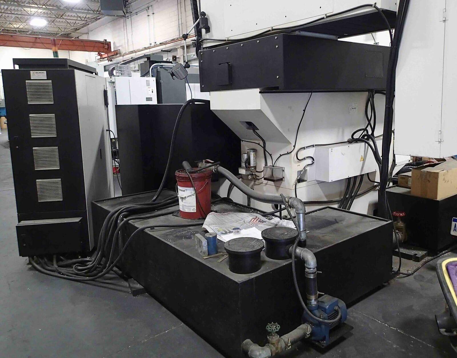 All specifications are assumed to be correct but must be confirmed by the purchasing entity.,Auto Tool Changer Positions: 8 Work Tank Capacity (l x w x h): 82.6″ x 45.2″ x 24.8″ (19″ Oil Level) Dielectric Tank Capacity: 605 Gal Peak Power Output: 200 Amp All specifications are assumed to be correct but must be confirmed by the purchasing entity.,Electrical Requirements: 220 V; 3 Ph; 60 Hz (11 KVA) Approx Dimensions (l x w x h): 180″ x 165″ x 134″ Approx Machine Weight: 18,000 lbs All specifications are assumed to be correct but must be confirmed by the purchasing entity.,Equipped With: CNC Control Panel 8 Position Automatic Tool Changer C-Axis Rotational Head Glass Linear Scales 10 Orbit Patterns Remote Pendant Control Dual Dielectric Tanks All specifications are assumed to be correct but must be confirmed by the purchasing entity. |