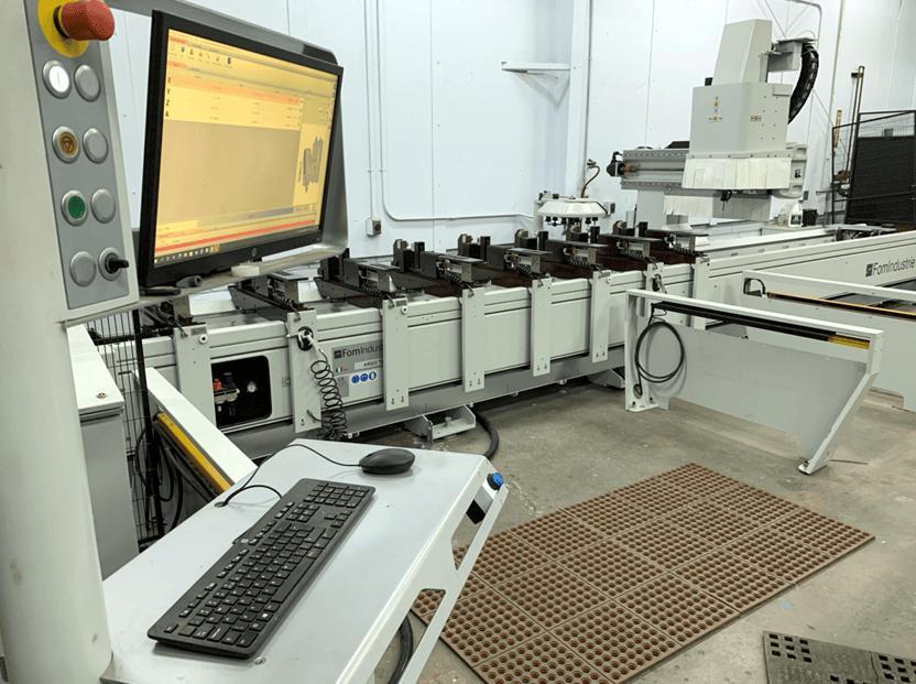 All specifications are assumed to be correct but must be confirmed by the purchasing entity.,Equipped With: – Electrospindle FOM 6,5 Kw 17.000 rpm (ISO 30) -Electric cabinet cooling – Flow drilling kit – Lubrication system kit for angular heads – Cooling system by emulsified oil with coolant recovery – Forced lubrication for guideways movement – Wireless bar code optical reader, including data import module for Fom Protocol – Wireless bar code optical reader, including data import module for Fom Protocol and data conversion drive – Angular unit for blade – Single tool angular unit – Double tool angular unit – ISO cone for blade – 12 position tool magazine. – 8 Pneumatic vices with automatic positioning by numerical controller – No.4 pneumatic vices with independent positioning – Left sliding pneumatic stop – Full soundproof cover of the machining head – Minimum quantity lubrication (MQL) with pure oil – Greasing gun – Chip conveyor belt – Chip bin – Set up for fumes extraction – Photoelectric cell barrier. – Rear and side fences and swinging gate – Machine handling kit – Electronic equipment ”Power E-Box” – Mobile control console with PC, 21,5” touch screen monitor, mouse and keyboard All specifications are assumed to be correct but must be confirmed by the purchasing entity.,*Specifications Subject to Buyer Verification All specifications are assumed to be correct but must be confirmed by the purchasing entity. |