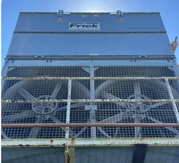 All specifications are assumed to be correct but must be confirmed by the purchasing entity.,Rated for R-717 and R-134a Refrigerants All specifications are assumed to be correct but must be confirmed by the purchasing entity.,Base Heat Rejection = 6953 MBTUH All specifications are assumed to be correct but must be confirmed by the purchasing entity.,Heat Rejection: 5030 MBTUH @ 76.3°F condensing and 78°F Wet Bulb w/ R-717 refrigerant All specifications are assumed to be correct but must be confirmed by the purchasing entity.,30 HP Fan Motor (2) All specifications are assumed to be correct but must be confirmed by the purchasing entity.,5HP Pump Motor All specifications are assumed to be correct but must be confirmed by the purchasing entity.,Air Flow Rate: 68,600 CFM All specifications are assumed to be correct but must be confirmed by the purchasing entity.,Dimensions: 12′ 5″ x 9′ 10″ x 15′ 4″ All specifications are assumed to be correct but must be confirmed by the purchasing entity.,Weight: 16,820 lbs All specifications are assumed to be correct but must be confirmed by the purchasing entity.,Also Included: Mycom 200VLG Rotary Screw R-717 Refrigerant Compressor All specifications are assumed to be correct but must be confirmed by the purchasing entity.,400HP 480V 3PH 428A All specifications are assumed to be correct but must be confirmed by the purchasing entity.,Frick RWB II-399B3 Refrigerant R-717 Rotary Screw Compressor All specifications are assumed to be correct but must be confirmed by the purchasing entity.,250HP 460V 3PH 272A All specifications are assumed to be correct but must be confirmed by the purchasing entity.,FES 480B-ME Rotary Screw R-717 Refrigerant Compressor All specifications are assumed to be correct but must be confirmed by the purchasing entity.,350HP 460V 3PH 384A All specifications are assumed to be correct but must be confirmed by the purchasing entity. |