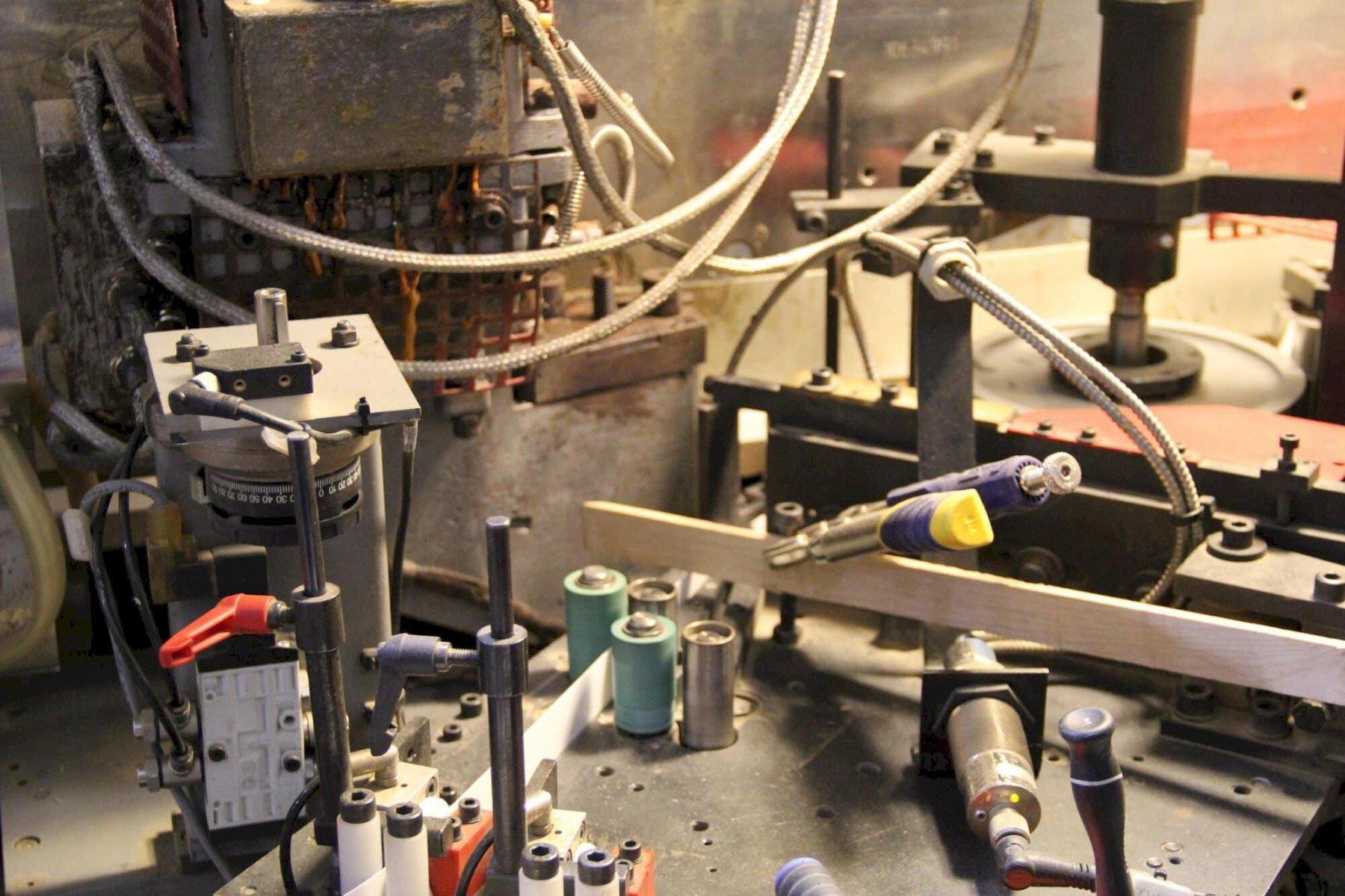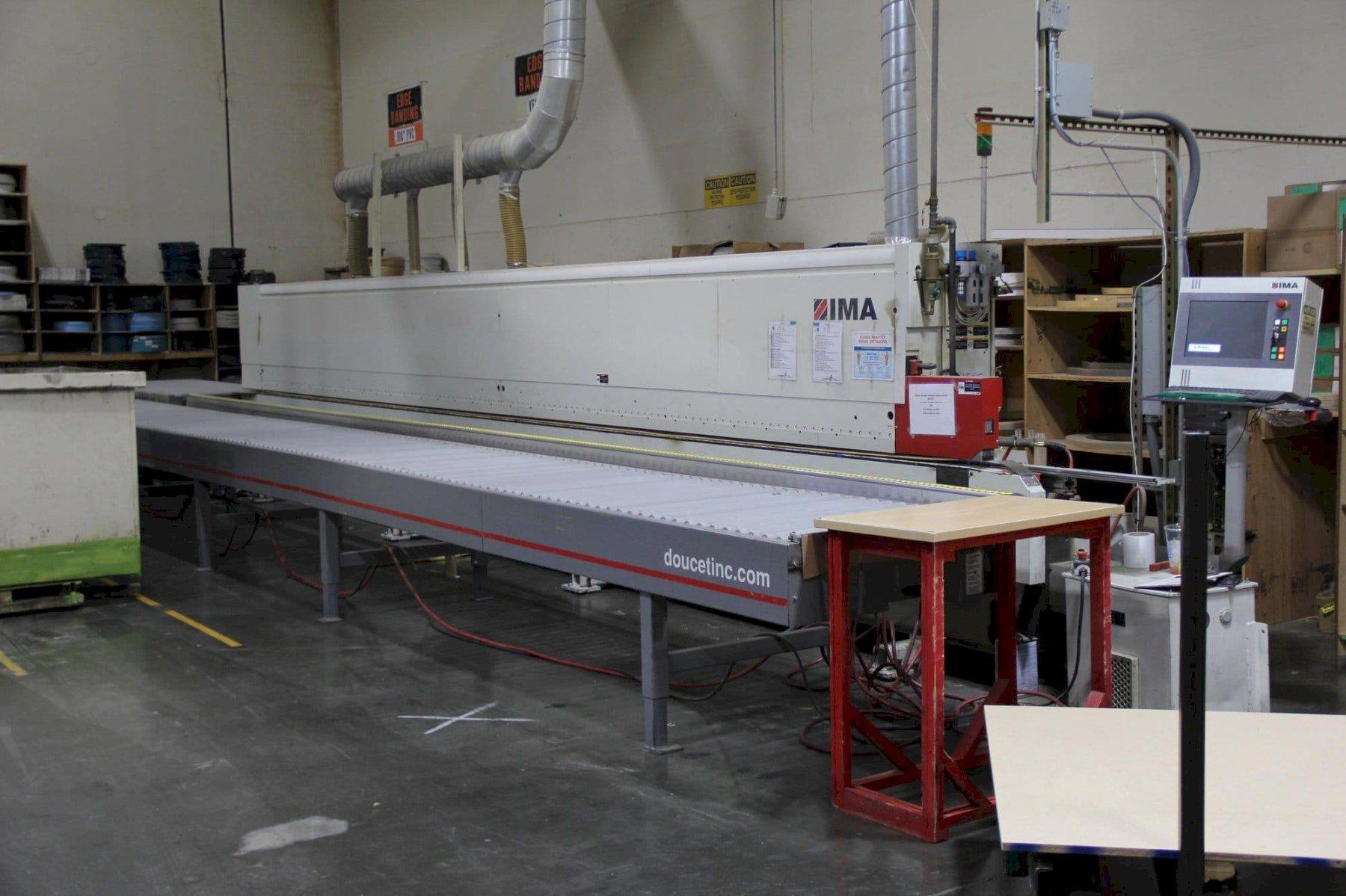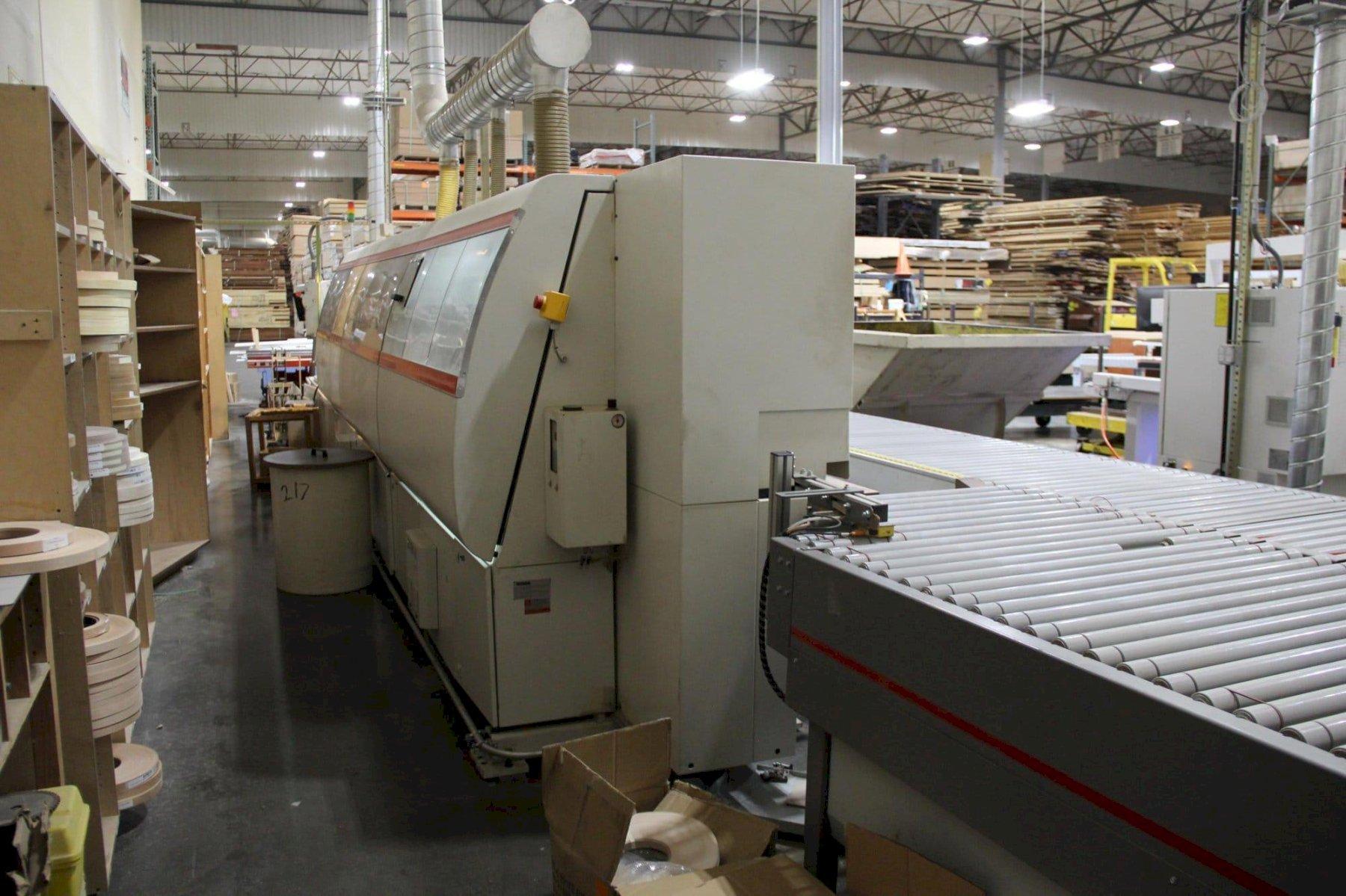 All specifications are assumed to be correct but must be confirmed by the purchasing entity.,Edgeband Height Max: 65 mm Workpiece Length Min: 150 mm Workpiece Width Min: 65 mm Electromotoric height adjustment Top pressure by belt Feedrate max: 30 m/min Preheating zone Continuously variable feed Places in Coil Magazine: 12 Spraying Device Trimming Saw: 2 motors Flush/radius/chamfer milling units: 1 Buffing unit Type: Left-side Machine CE Marking All specifications are assumed to be correct but must be confirmed by the purchasing entity.,Space Required: Length: 13.700 mm Width: 5.550 mm Height: 2.400 mm All specifications are assumed to be correct but must be confirmed by the purchasing entity.,IMA 08.378 Premilling unit IMA 08.42 Cutting aggregate IMA 08.055 Milling aggregate IMA MFA 08.348 Multiple machining aggregate IMA 04.1570 Gluing aggregate IMA 08.519 Profile scraper aggregate IMA 08.521 Duplex flat scraper All specifications are assumed to be correct but must be confirmed by the purchasing entity.,Equipped with: Brand New Gearbox All specifications are assumed to be correct but must be confirmed by the purchasing entity. |